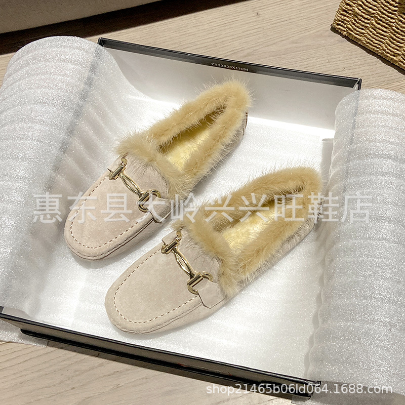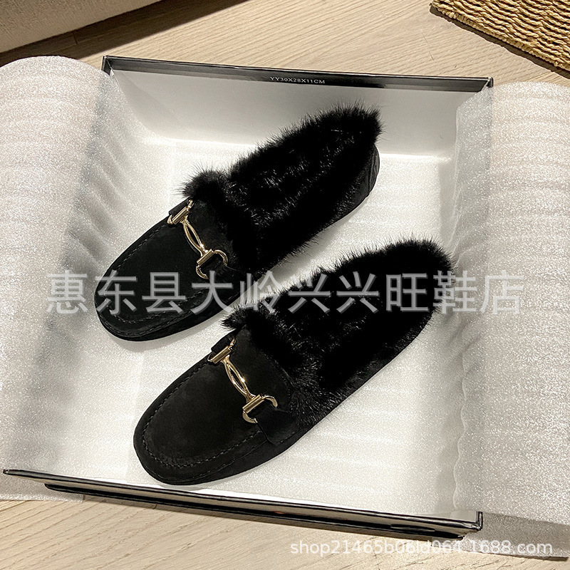 기모 신발 여성 겨울 2022 새로운 정품 가죽 신발 여성 신발 마오 마오 신발 여성 아웃웨어 라운드 토 슬립온 면 신발스토어 가기