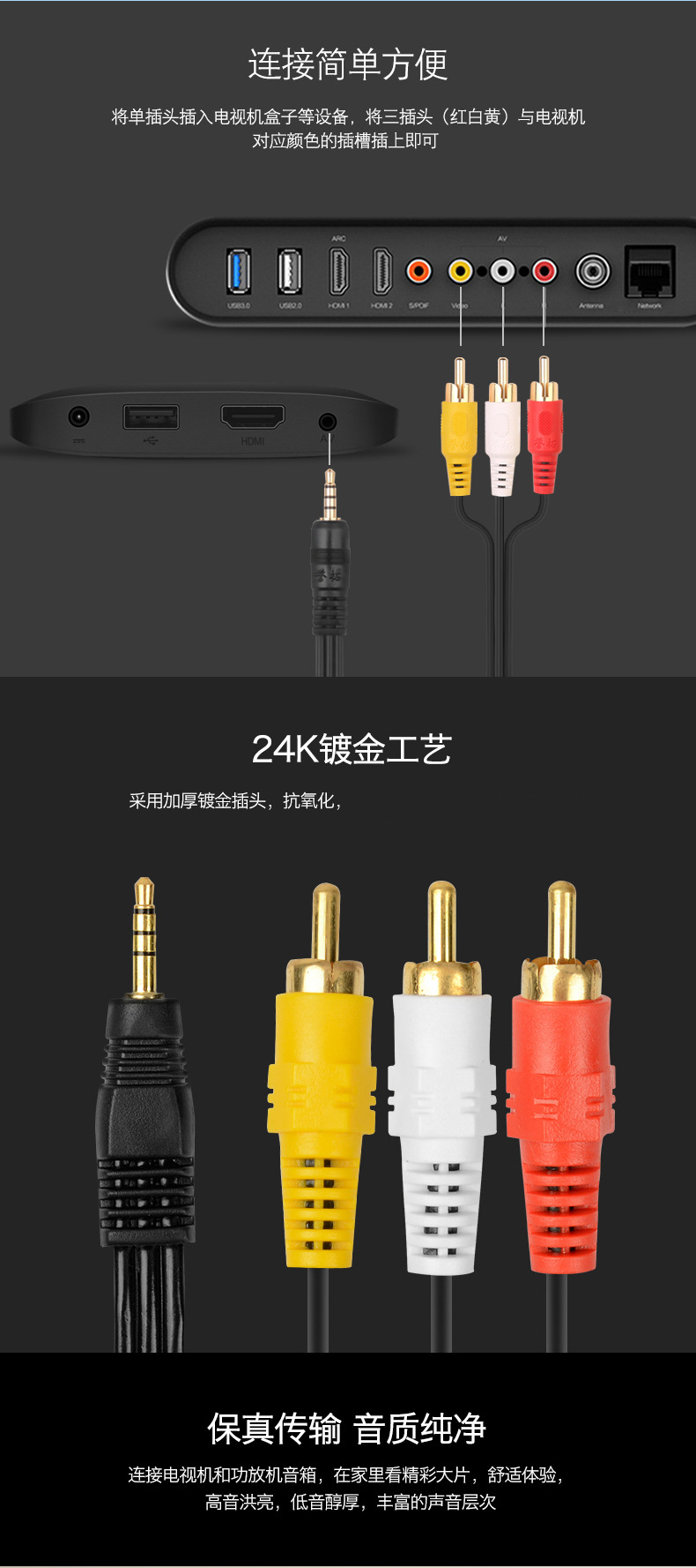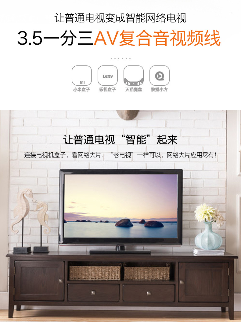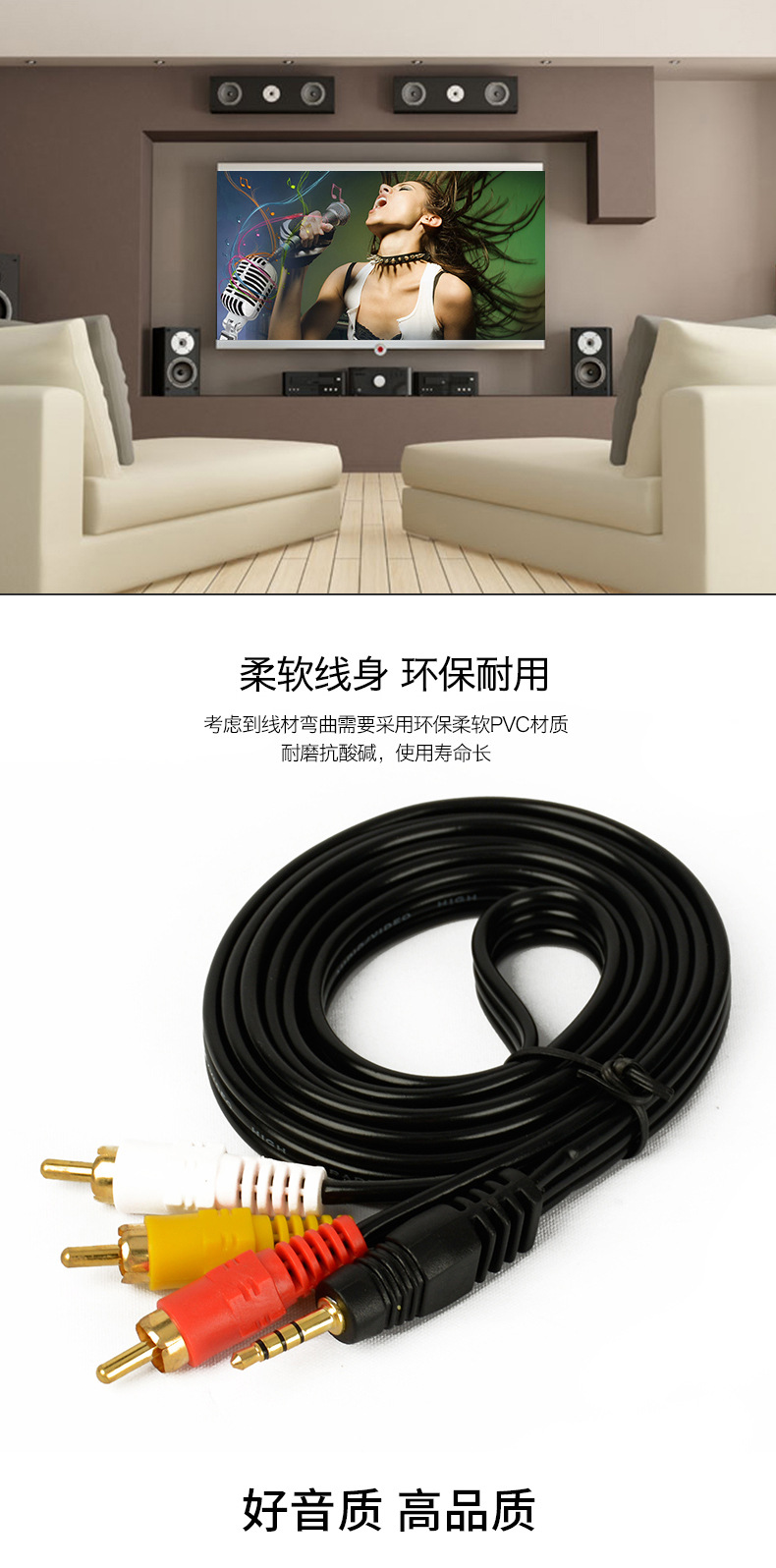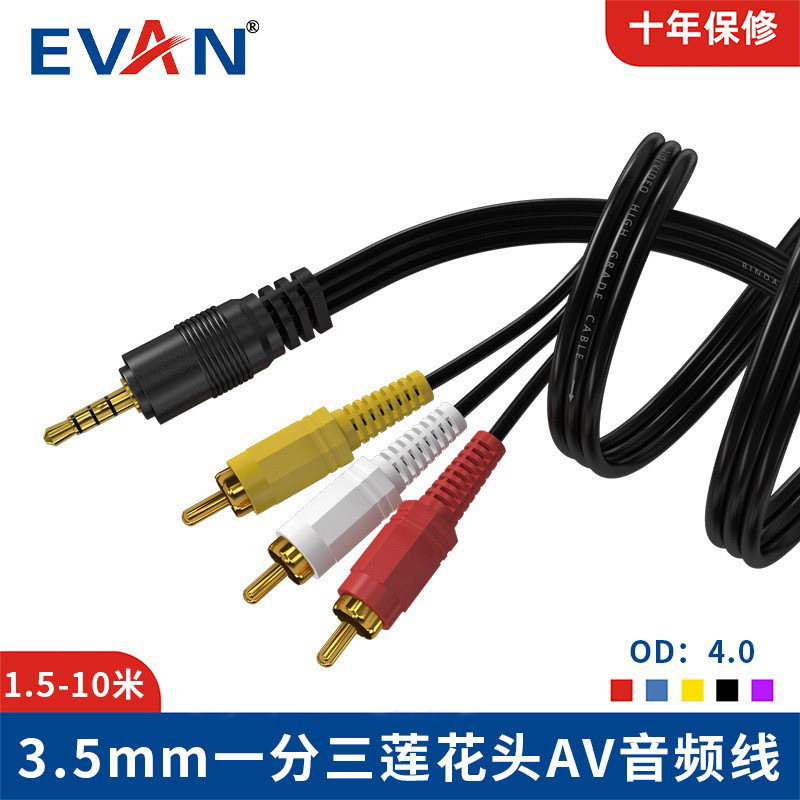 TV AV 케이블에 연결된 1-3 개의 로터스 헤드 오디오 케이블 3.5 오디오 케이블 회전 RCA스토어 가기