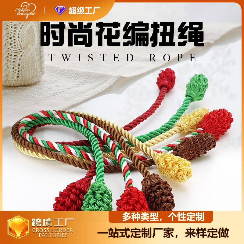 도매 손으로 짠 크리스마스 레이스 꼬인 로프 국경 뜨거운 새로운 다채로운 멀티 스트랜드 장식 로프