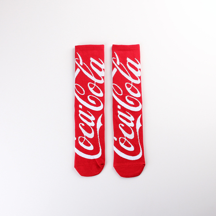 만화 만화 콜라 편지 캐주얼 스포츠 자카드 레드 젊은 남성과 여성 커플 중간 길이 양말 유행 양말 긴 양말스토어 가기