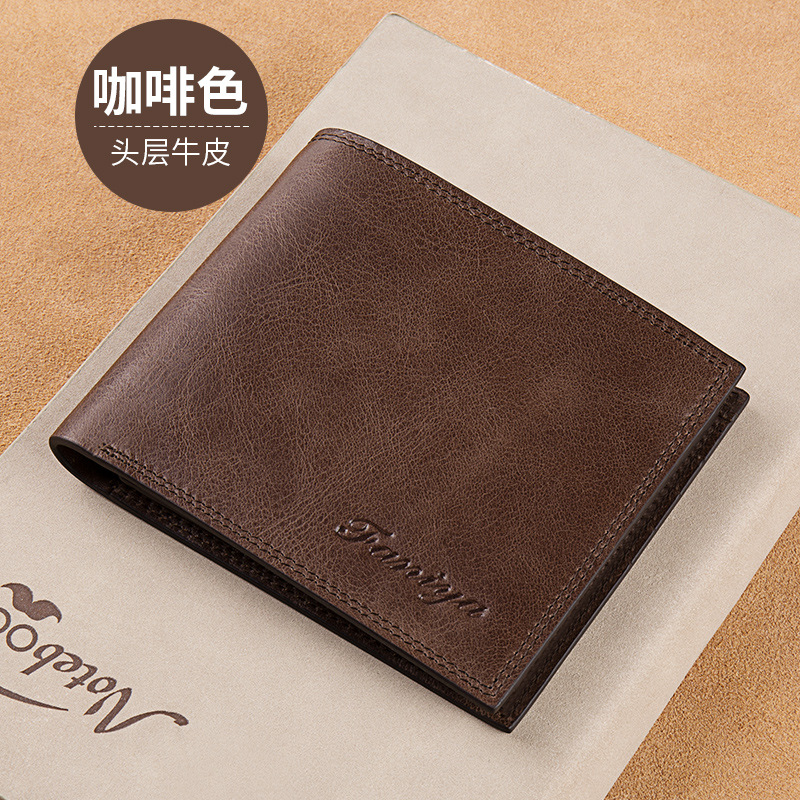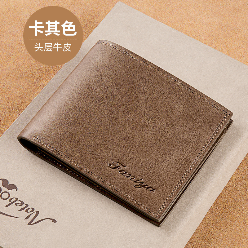 Fania 지갑 남성용 짧은 가죽 탑 레이어 소가죽 도난 방지 카드 가방스토어 가기