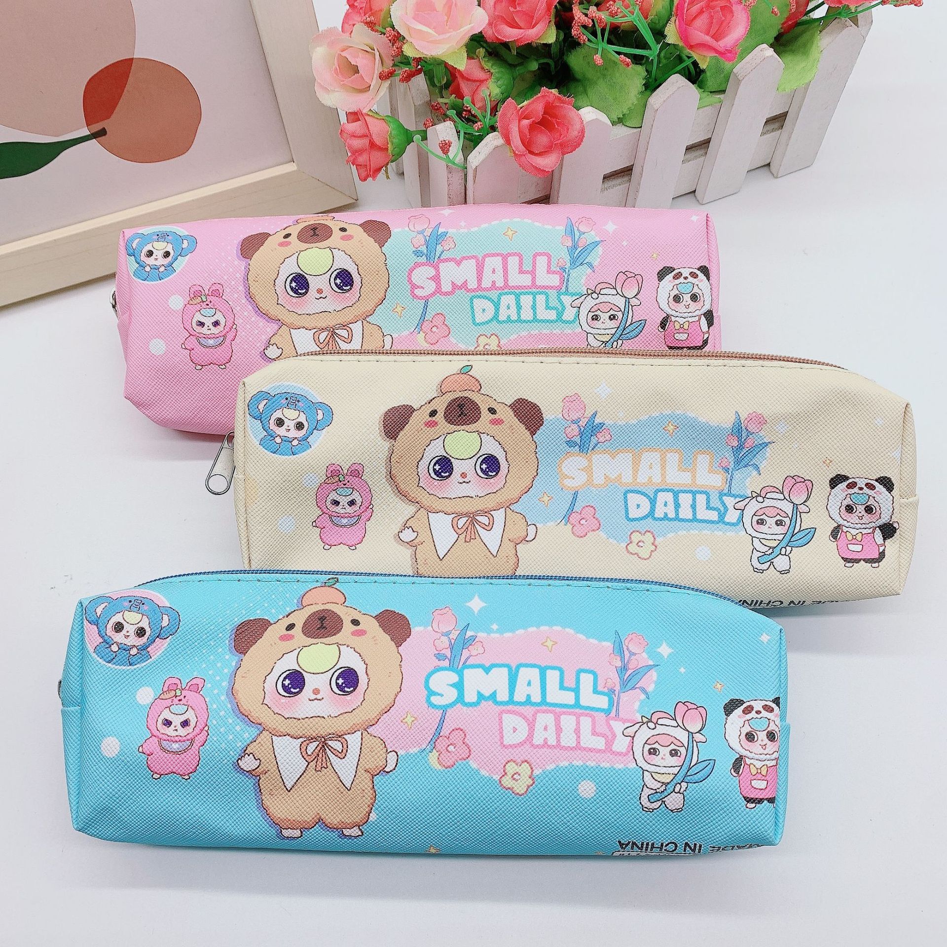 만화 주변 캐릭터 가족 필통 쿠루미 헌팅걸즈 필통 학생 문구 필통 PU 지퍼백 수납 가방