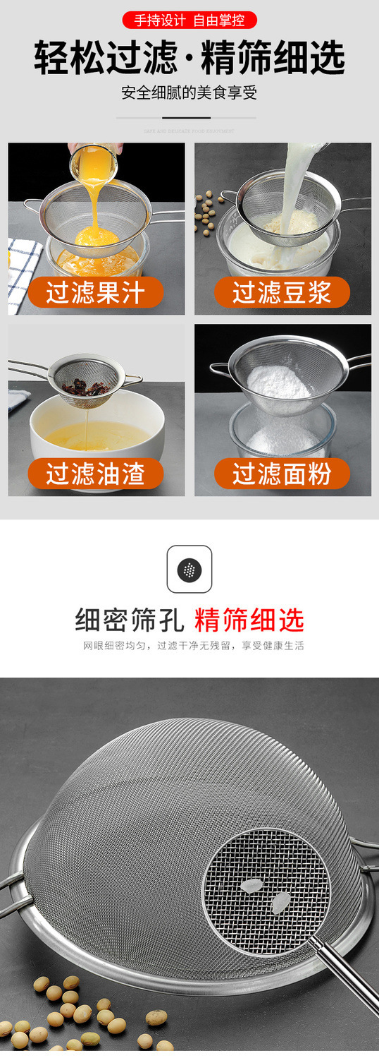 스테인레스 스틸 소쿠리 두유 필터 스크린 주스 참깨 체 가정용 주방 국수 숟가락 초미세 한약 밀가루 체스토어 가기