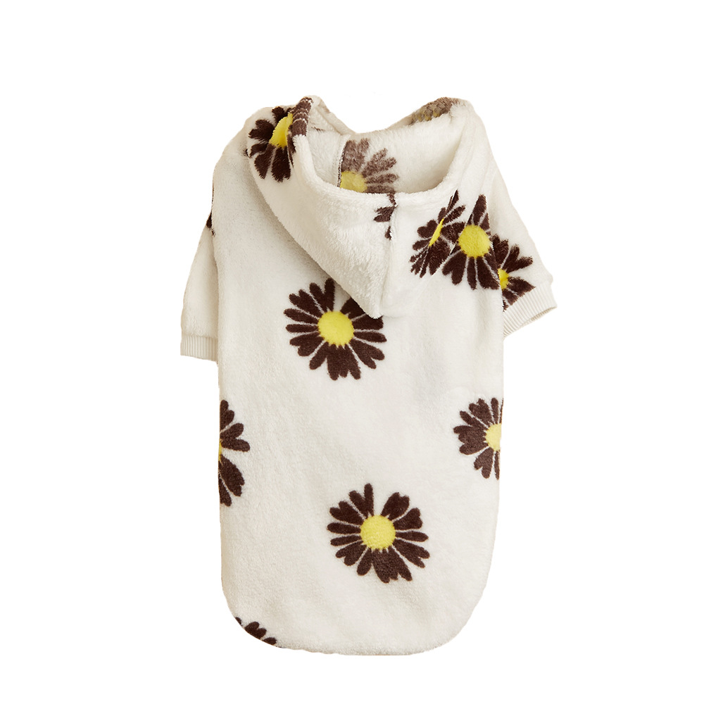 [크로스 보더 소스] 애완동물 옷 플러시 데이지 인쇄 편안한 통기성 귀여운 후드 고양이 개 옷