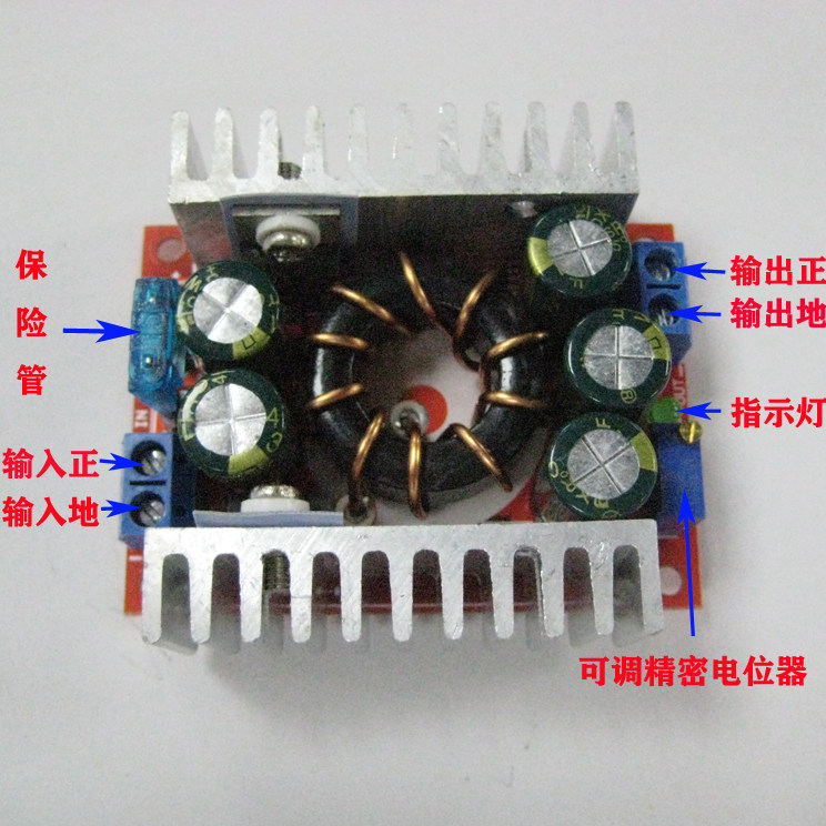 本模块可以应用在输入电压高于输出电压的降压领域,如蓄电池、电源变压器、DIY可调稳压电源、24V车载笔计本电源、车载LED灯带电源,工业设备降压、12V转3.3V,12V转5V,24V转5V,24V转12V等。