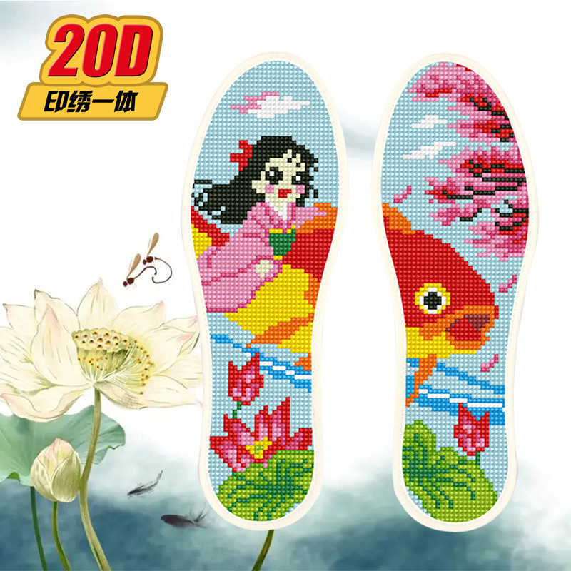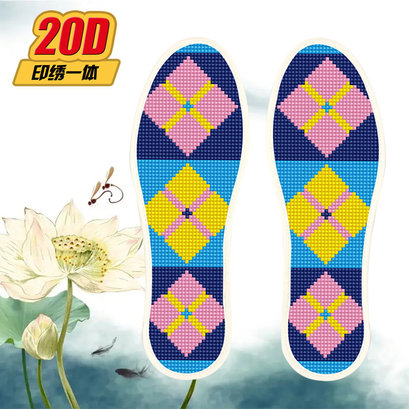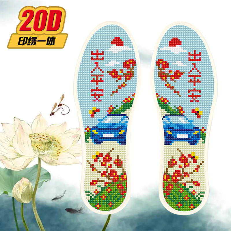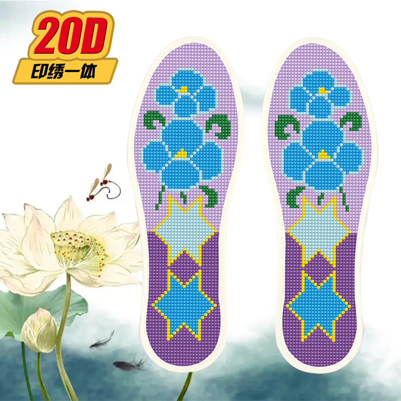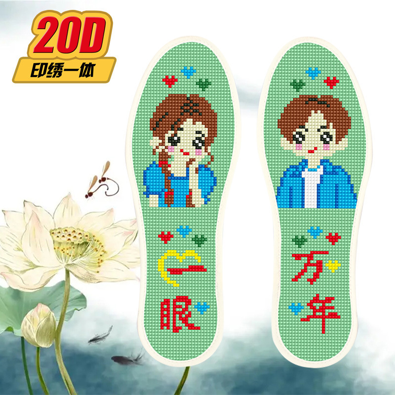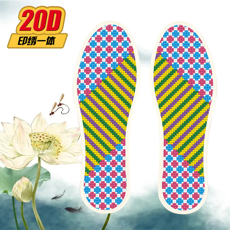 크로스 스티치 깔창 새로운 스타일 2 쌍 반제품 바늘과 실 포함 자체 자수 남성과 여성을위한 도매 순수 면직물