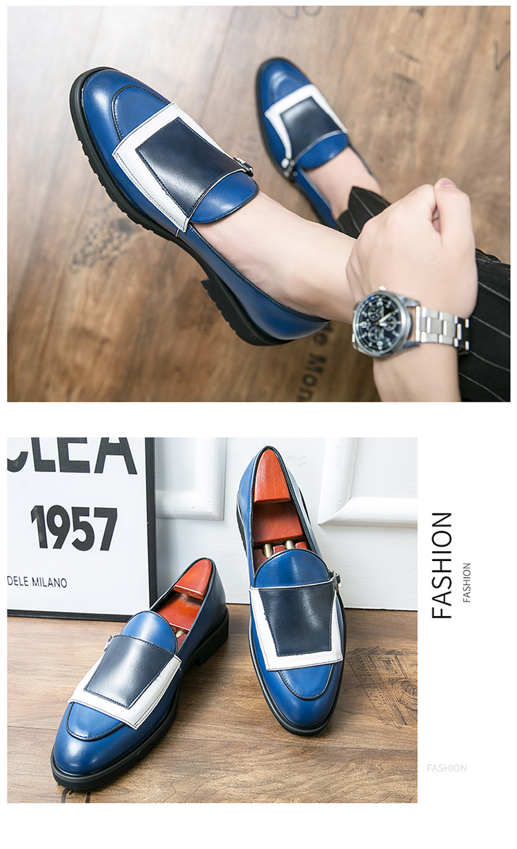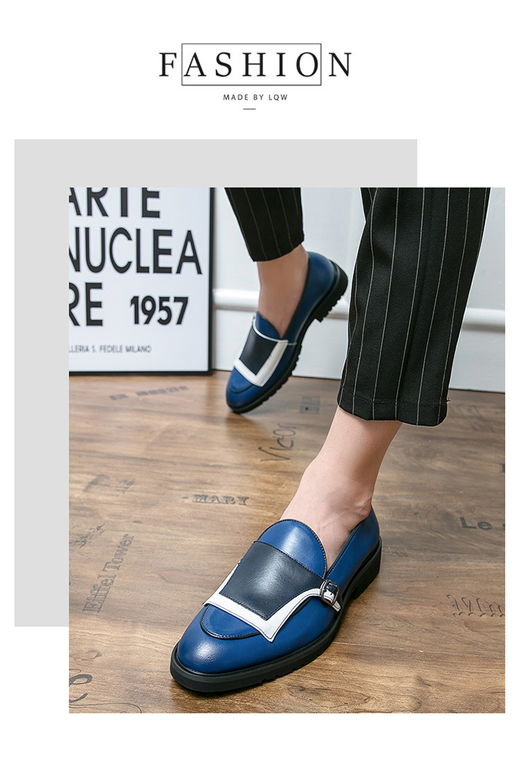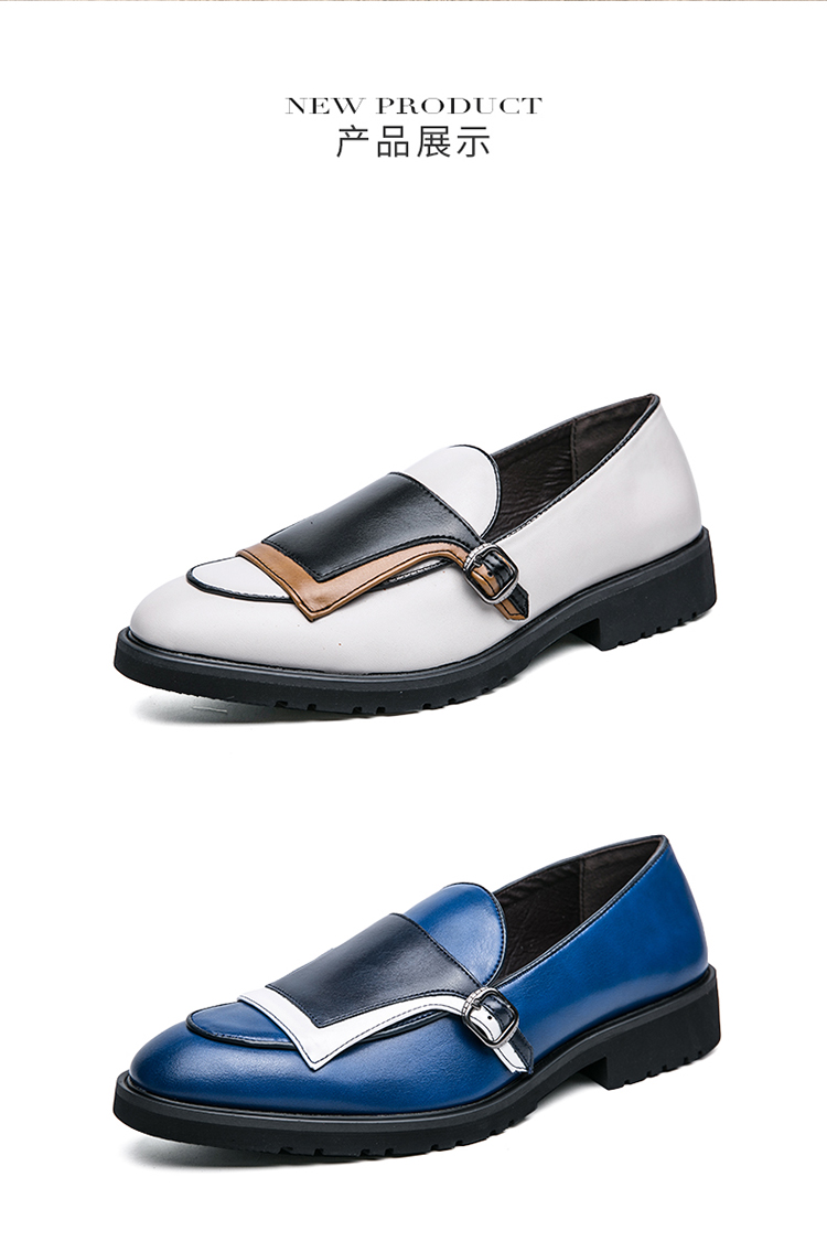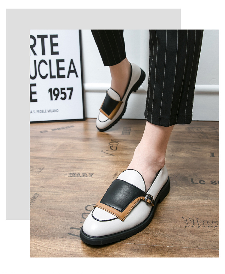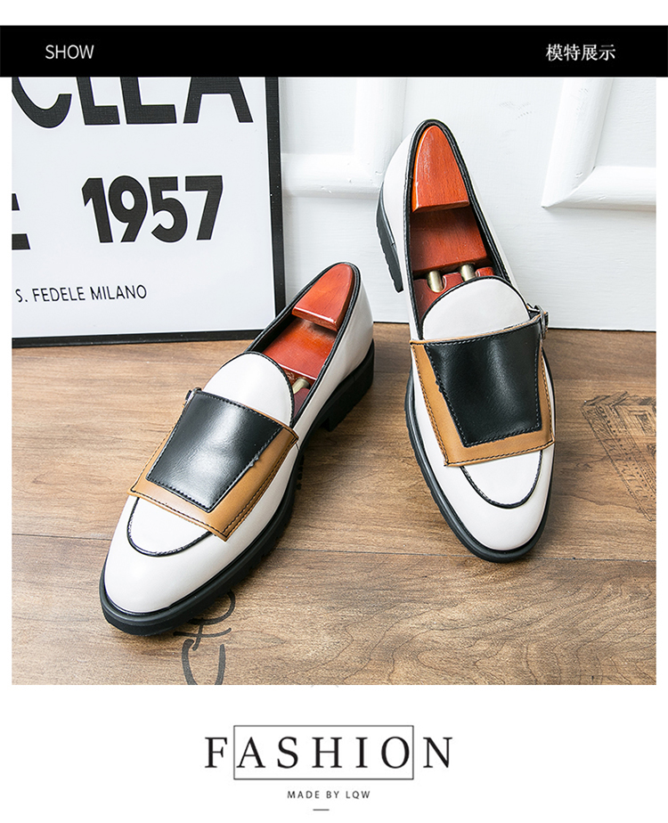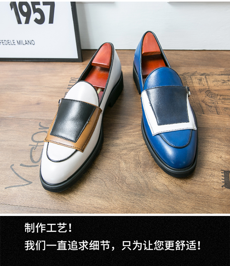 英伦风拼色布洛克男鞋45发型师鞋子男46韩版豆豆皮鞋大码伴郎潮鞋