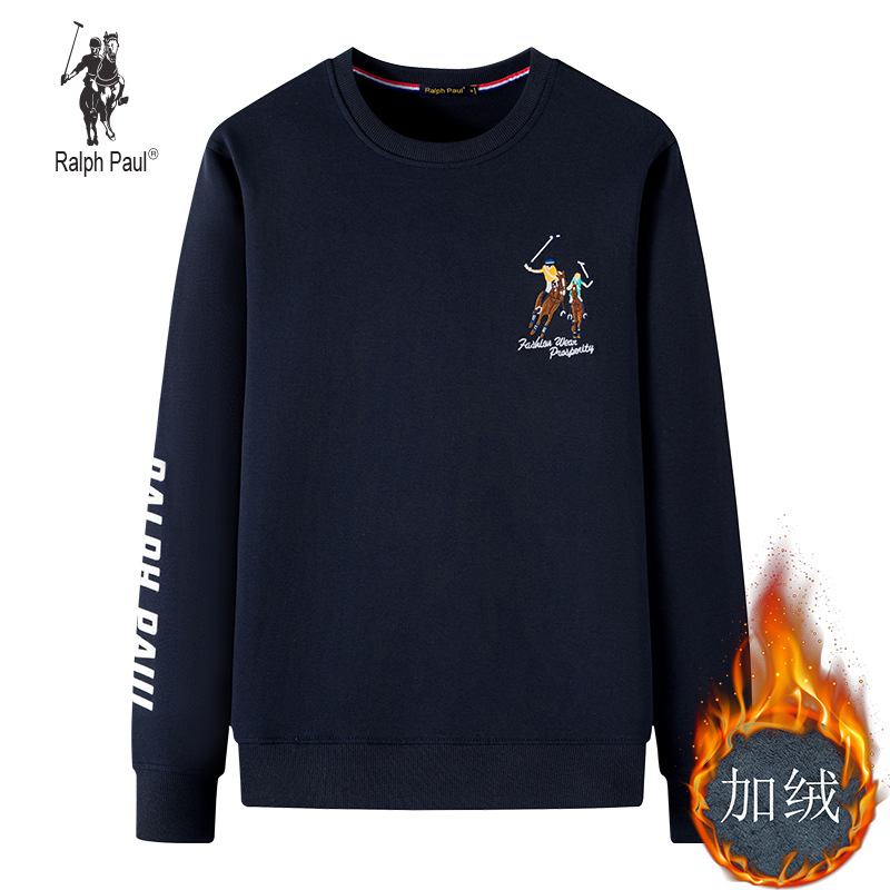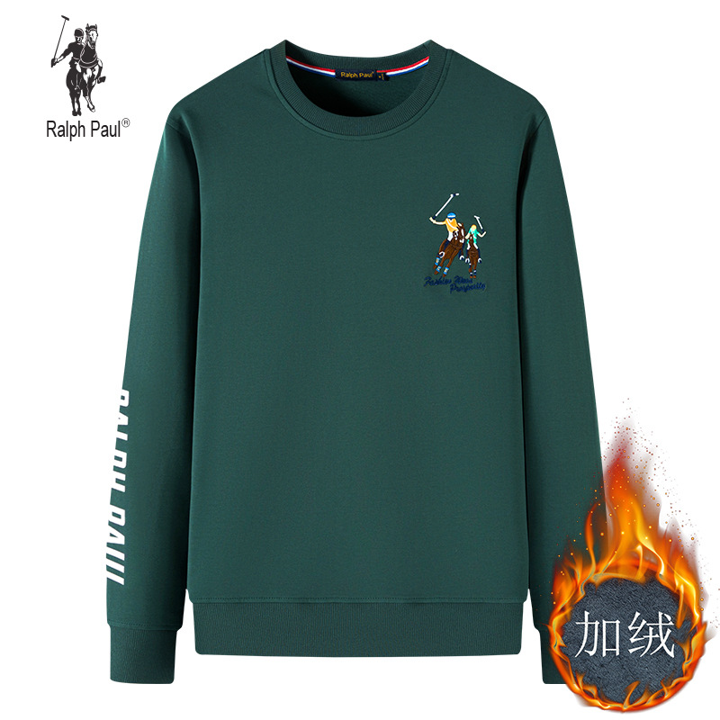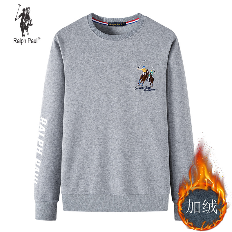 기모 두꺼운 Larren 폴 크루넥 운동복 남자의 풀오버 남자의 느슨한 플러스 사이즈 폴 자수 Ma Biao