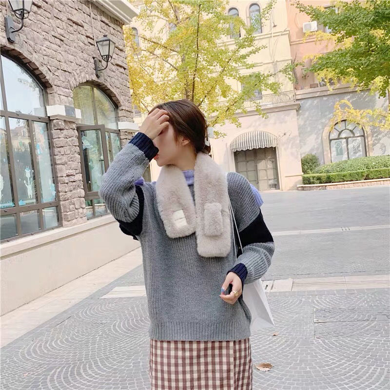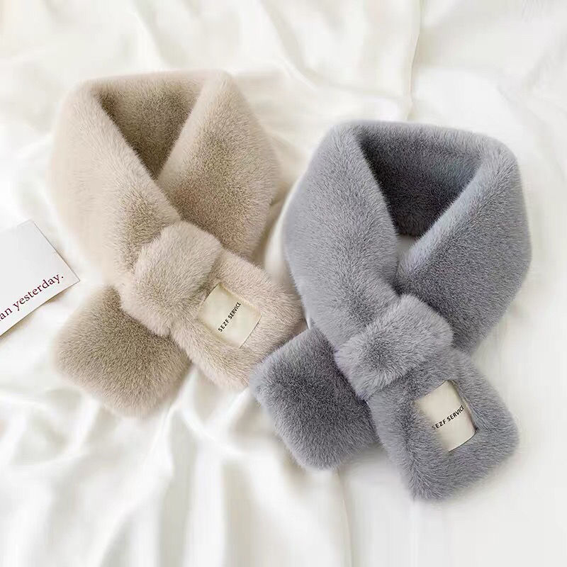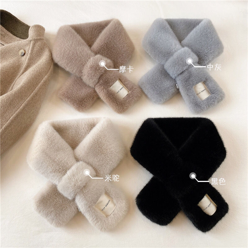 슈퍼 웜 스카프 여성의 가을과 겨울 옷감 라벨 한국식 모든 매치 인조 모피 렉스 토끼 봉제 목 스카프스토어 가기