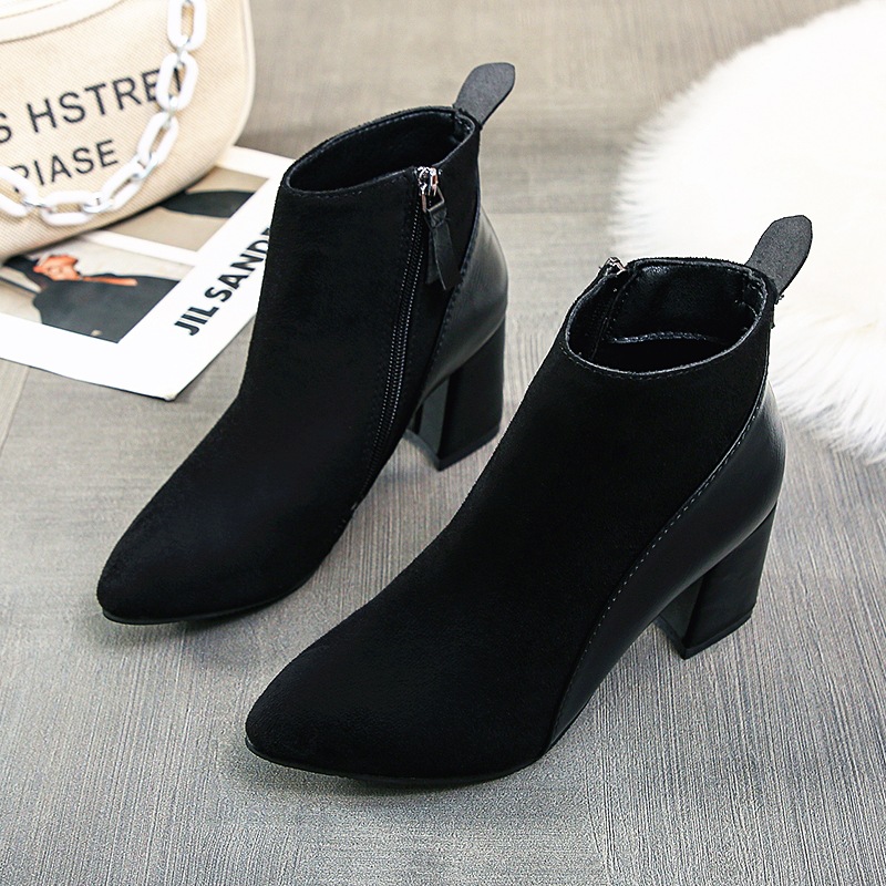 대외 무역 어린이를위한 대형 부츠 2022 가을과 겨울 새로운 유럽과 미국 스타일 뾰족한 두꺼운 굽 낮은 굽 여성용 짧은 부츠 여성용 트렌디