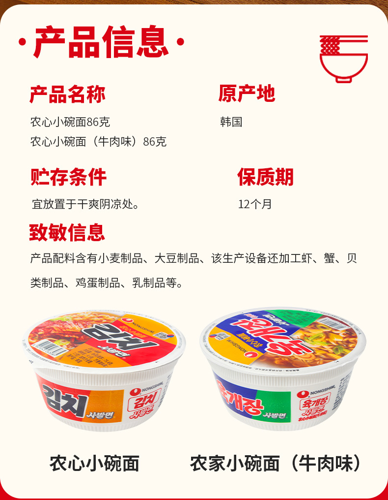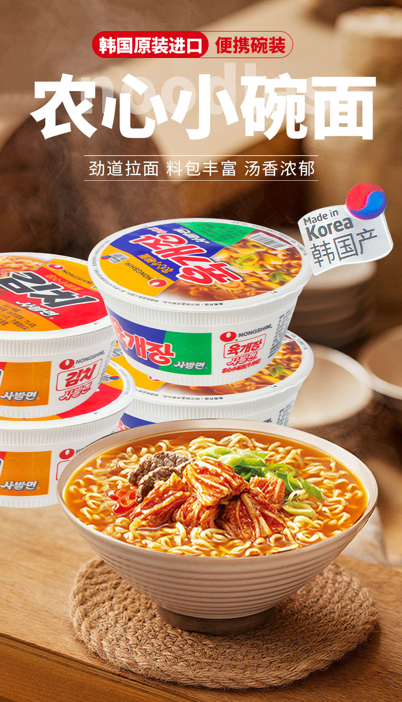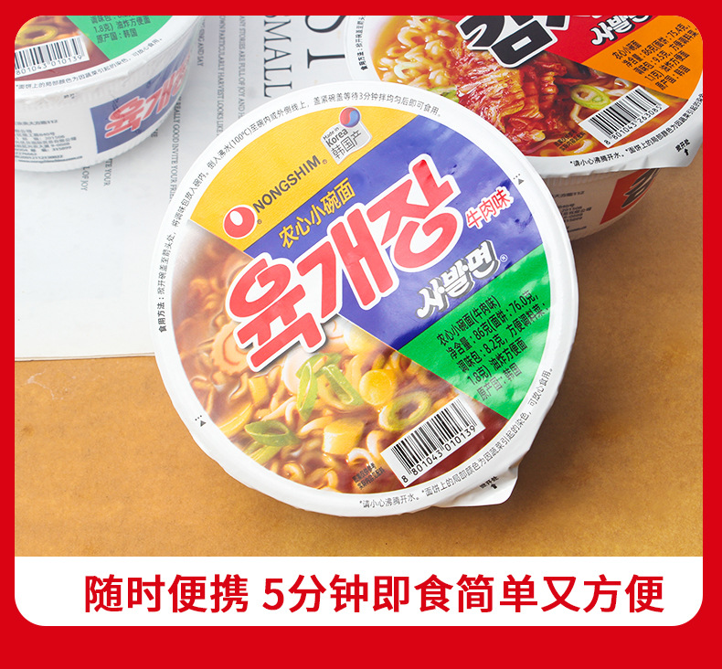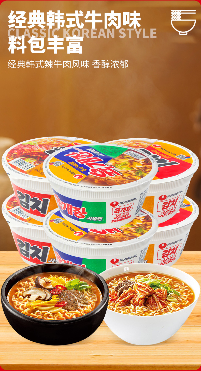 한국 수입 농심 쇠고기 김치맛 작은 그릇 국수 86g 매운 양배추 매운 라면 인스턴트 라면 도매