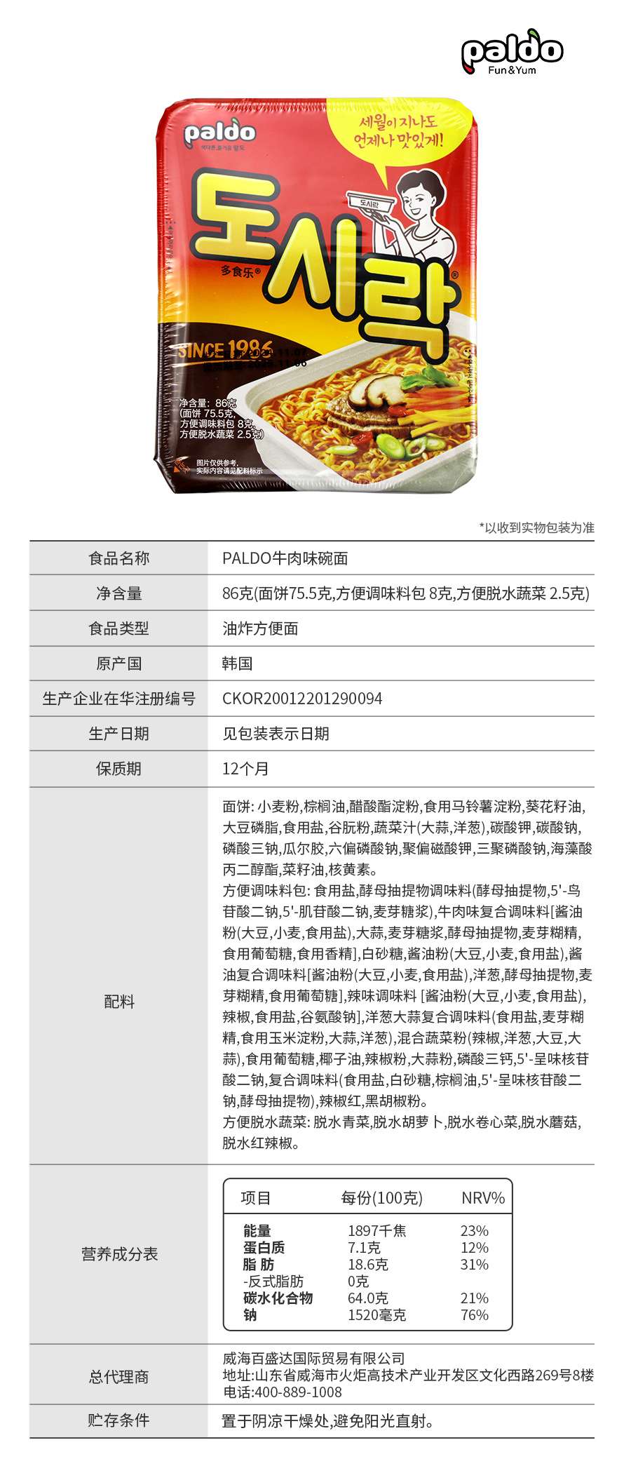 规格:86g/碗