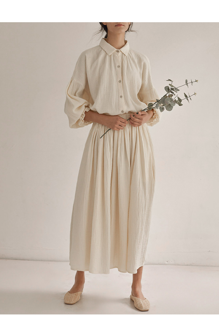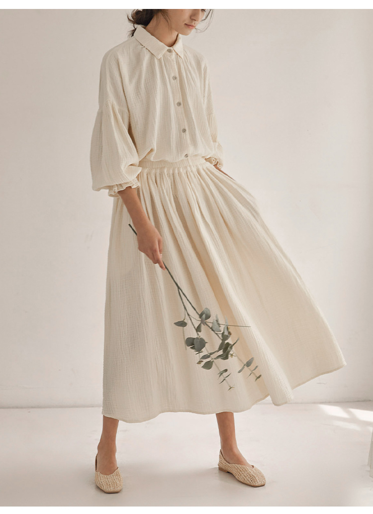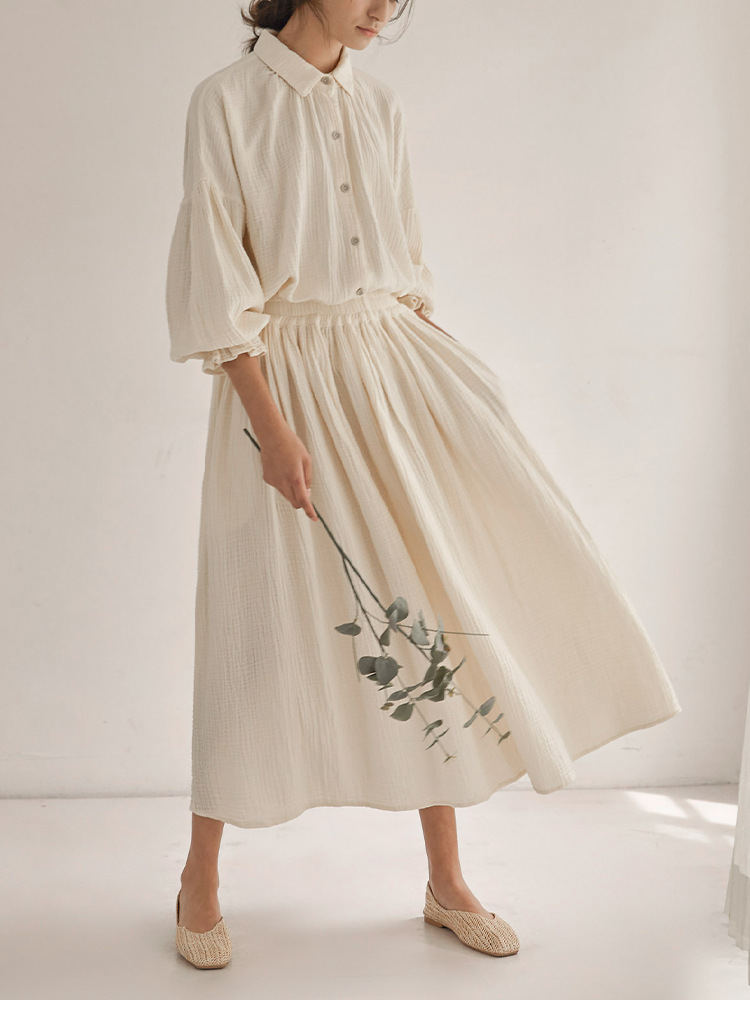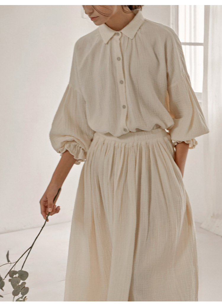 【재고정리】 홈웨어 세트, 랜턴 슬리브, 독특한 디자인, 순면 루즈핏 셔츠+스커트 여성복스토어 가기