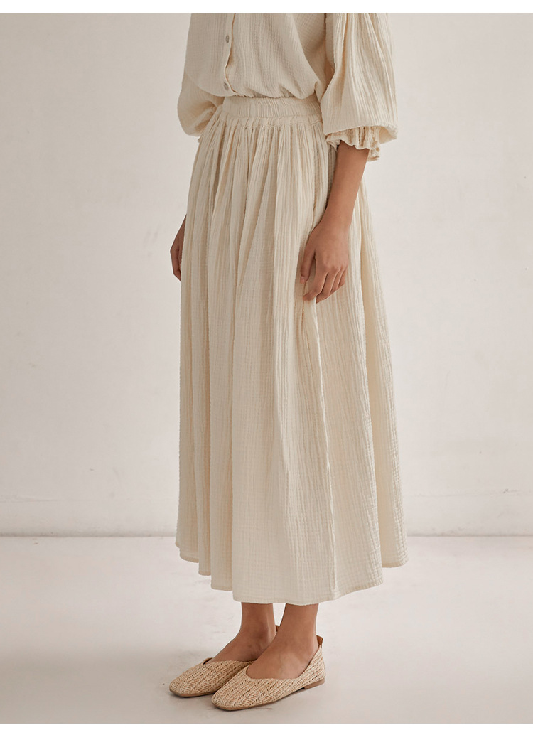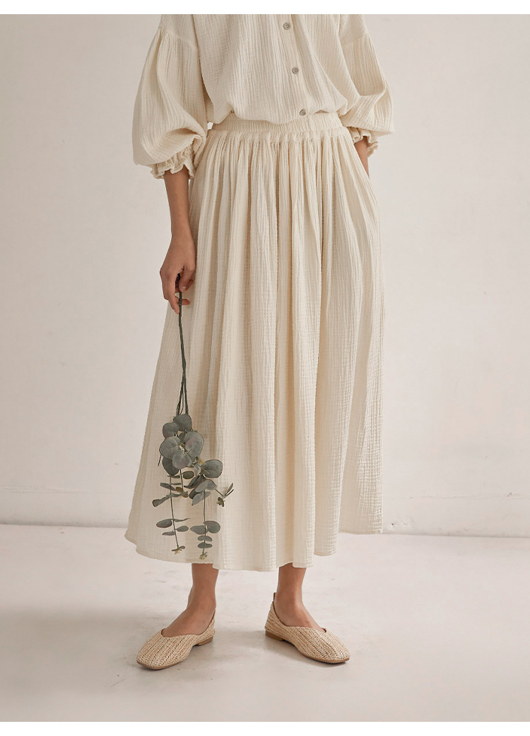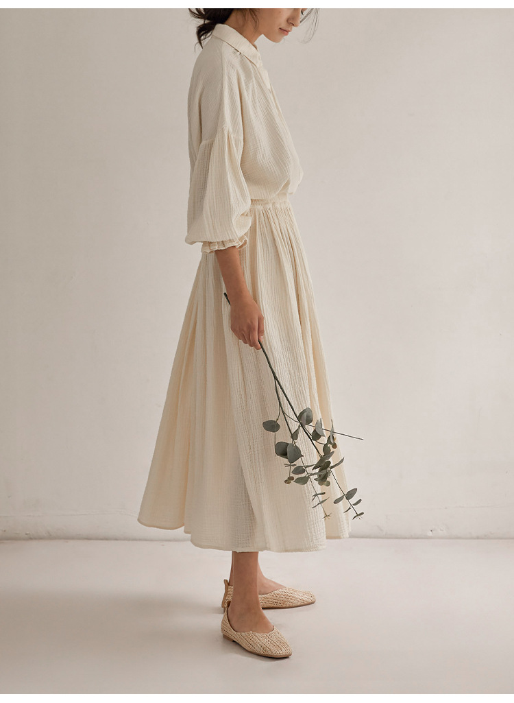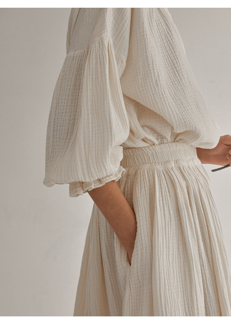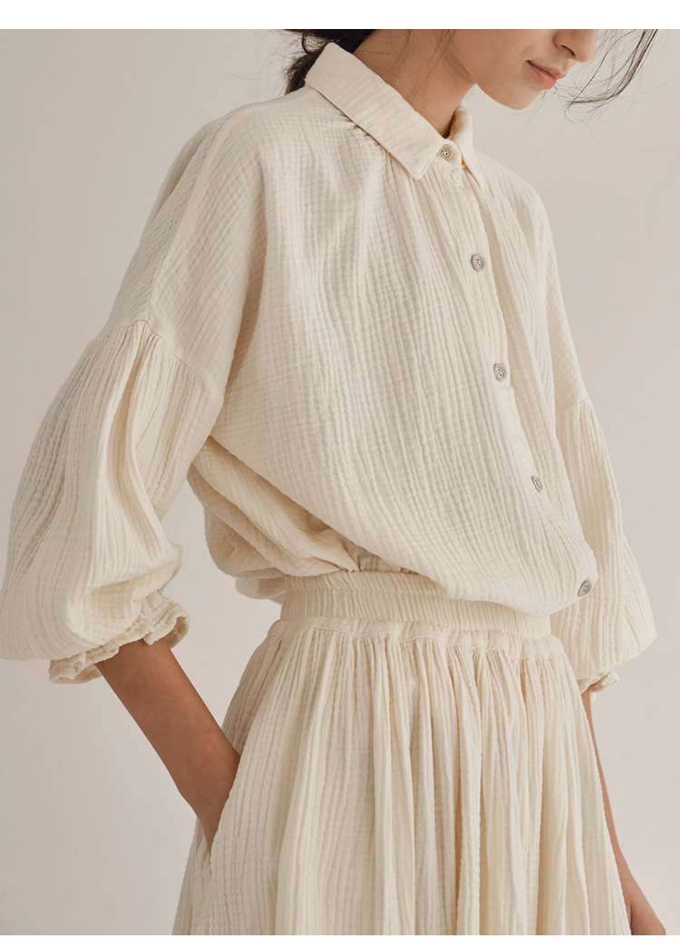 【재고정리】 홈웨어 세트, 랜턴 슬리브, 독특한 디자인, 순면 루즈핏 셔츠+스커트 여성복스토어 가기