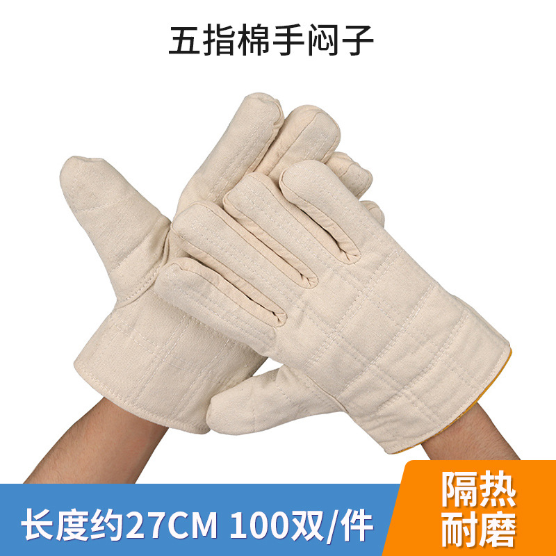 재고 도매 5 손가락 답답한 용접 장갑 두꺼운 내마모성 단열 용접 장갑 보호 노동 장갑