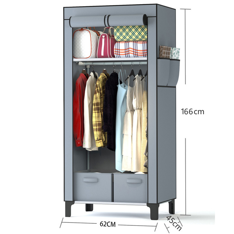 02-3B 간단한 옷장 저장 상자 다기능 옷장 매달려 옷장 기숙사 코트 랙 부직포 옷장