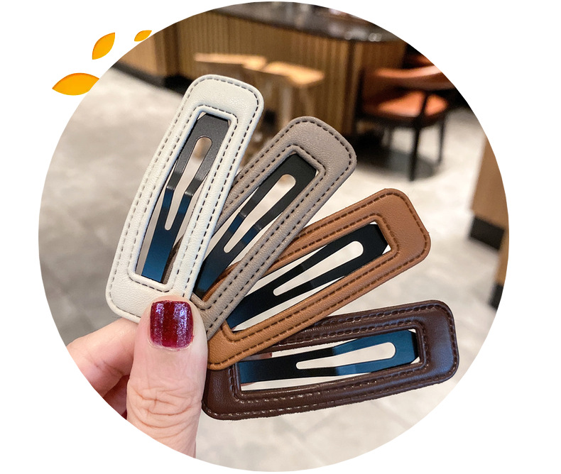 한국식 가죽 헤어 클립 여성용 부러진 머리 사이드 프린지 클립 소녀의 머리 장식 머리 클립 인터넷 연예인 헤어 액세서리 BB 클립스토어 가기