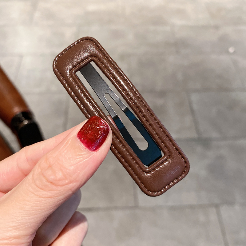 한국식 가죽 헤어 클립 여성용 부러진 머리 사이드 프린지 클립 소녀의 머리 장식 머리 클립 인터넷 연예인 헤어 액세서리 BB 클립