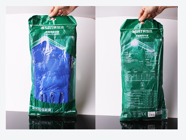 Shida 비스듬한 아르곤 아크 용접 보호 노동 보호 작업 장갑 전기 용접 내마모성 소가죽 장갑 작업 FS0107-8