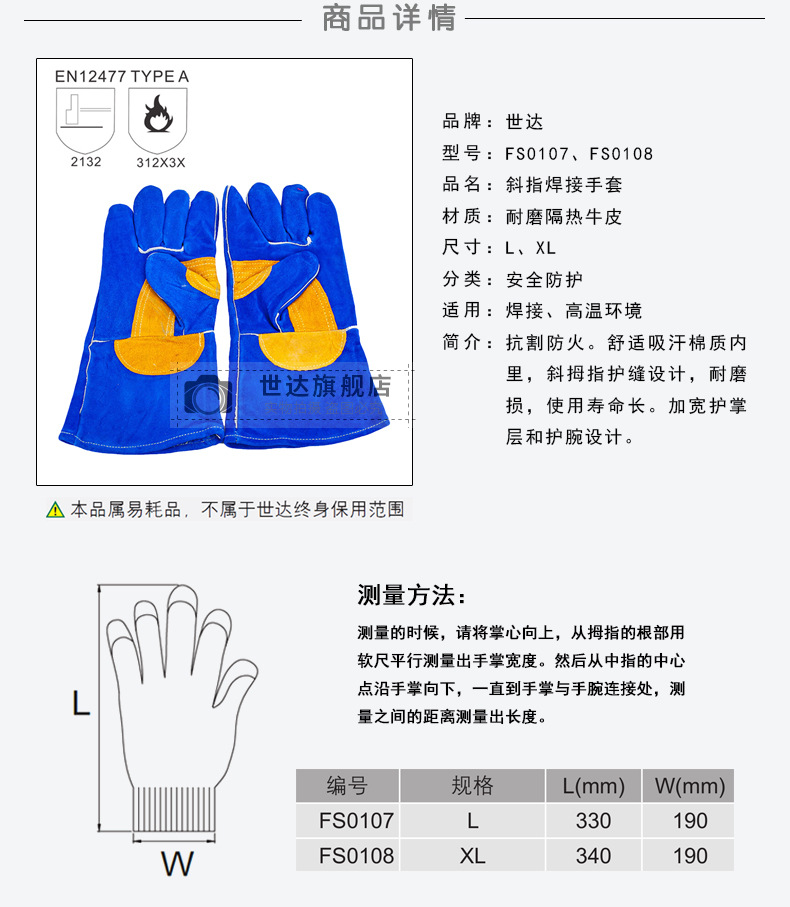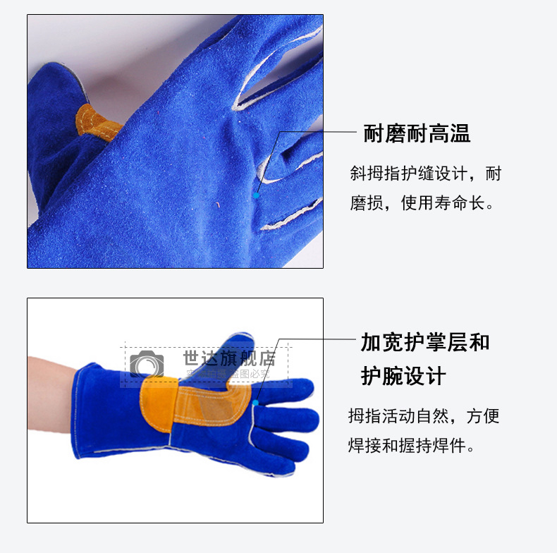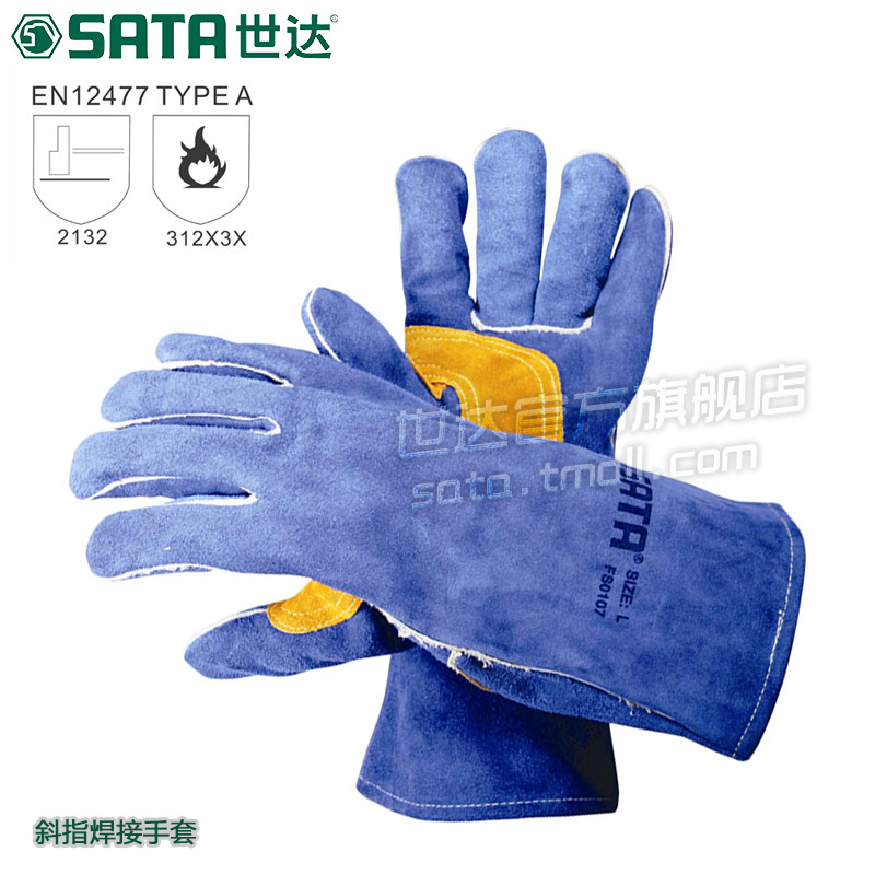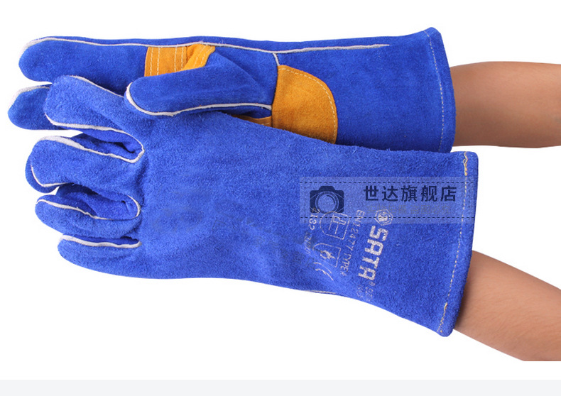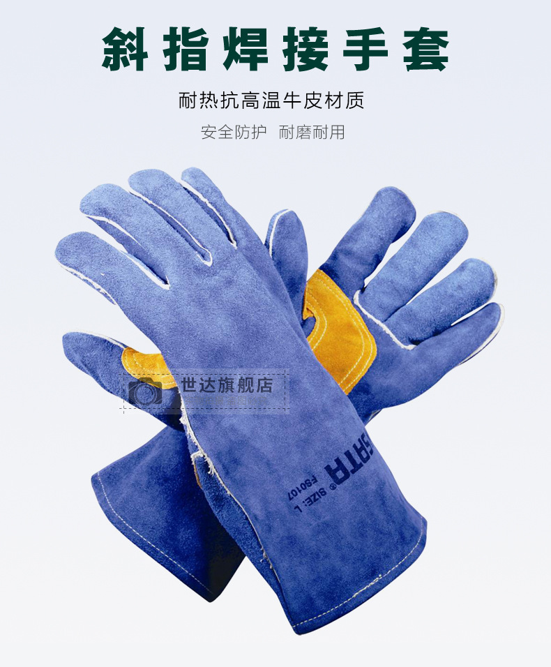 Shida 비스듬한 아르곤 아크 용접 보호 노동 보호 작업 장갑 전기 용접 내마모성 소가죽 장갑 작업 FS0107-8스토어 가기