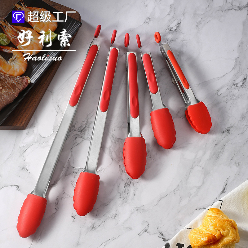 스테인레스 스틸 실리콘 식품 클립 베이킹 빵 클립 뷔페 음식 클립 고온 저항 바베큐 클립 화상 방지 스테이크 클립스토어 가기