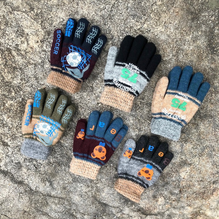 6-10 세 어린이와 초등학생 더블 레이어 두꺼운 기모 만화 소년 방풍 니트 손가락 장갑