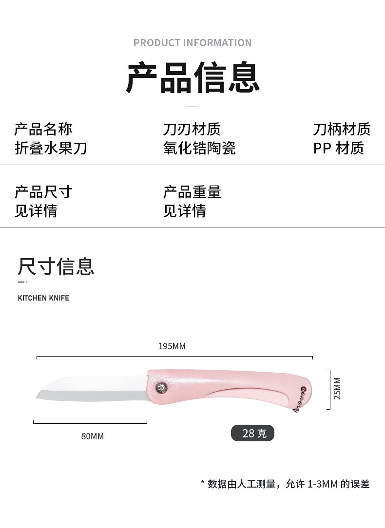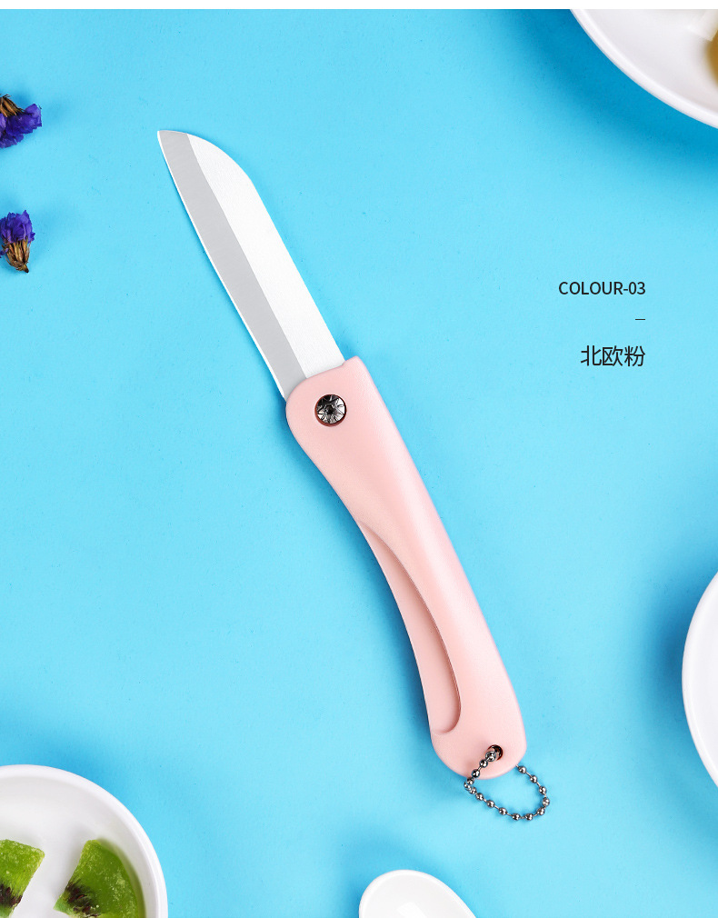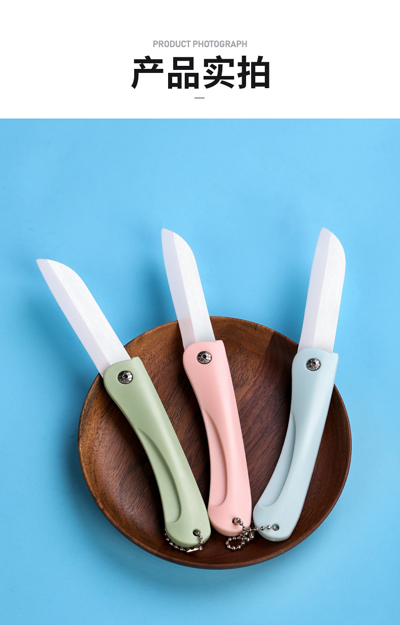 세라믹 칼 주방 작은 칼 휴대용 체인 접는 칼 다기능 휴대용 미니 가정용 세라믹 과일 칼