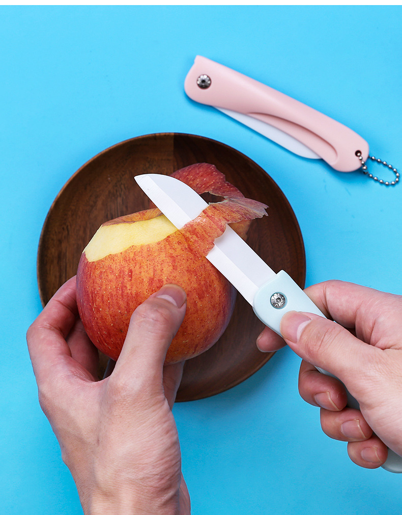 세라믹 칼 주방 작은 칼 휴대용 체인 접는 칼 다기능 휴대용 미니 가정용 세라믹 과일 칼스토어 가기