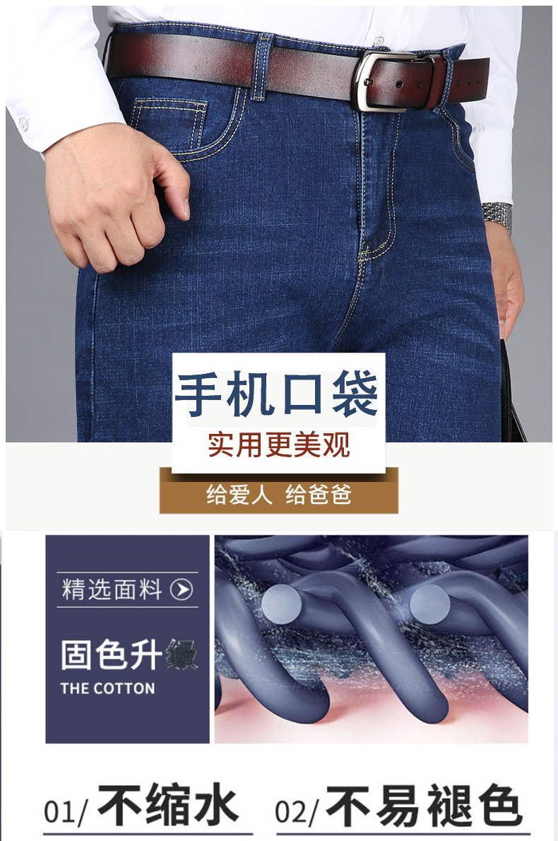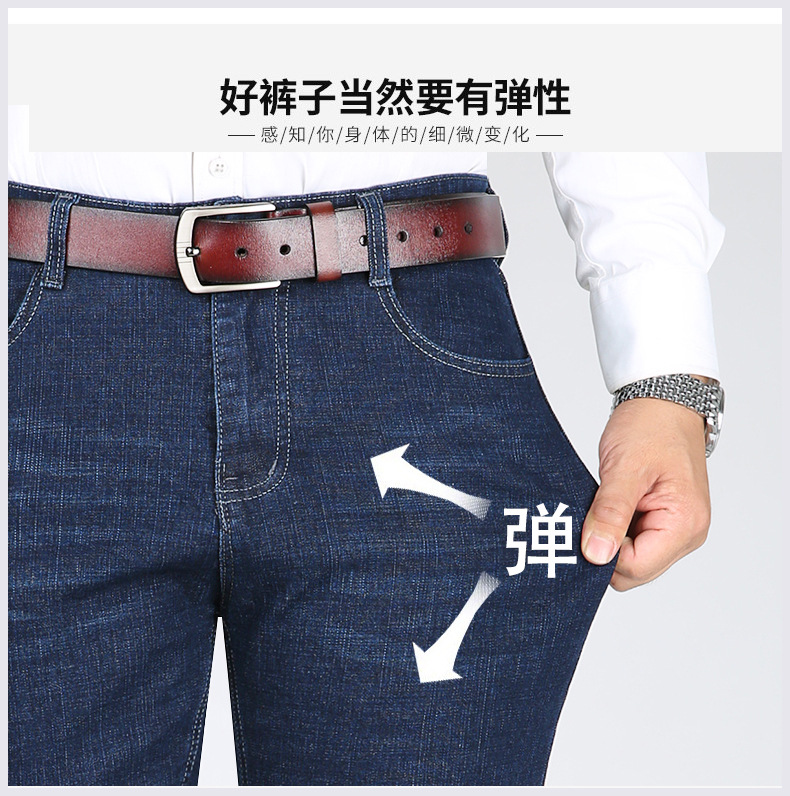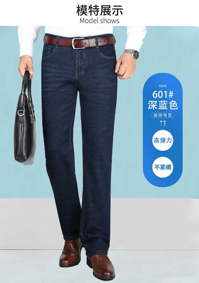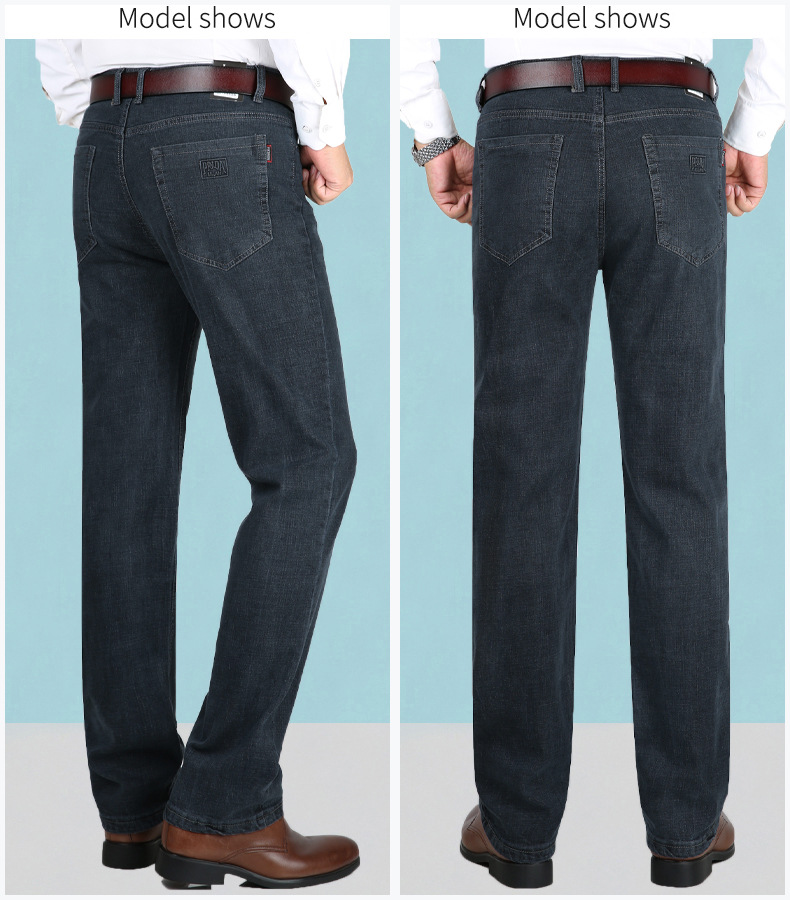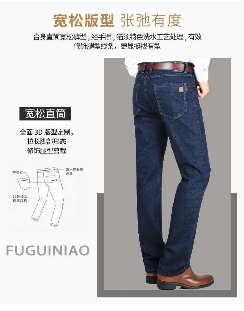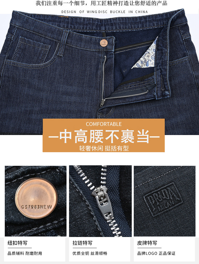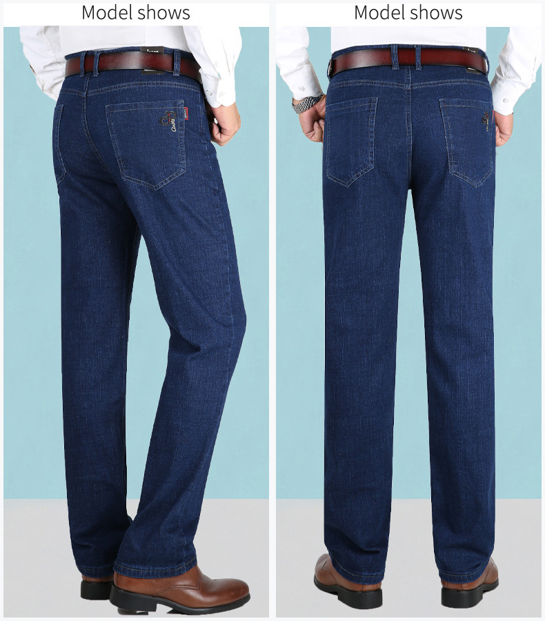 기모 두꺼운 청바지 남자의 느슨한 스트레이트 탄성 플러스 사이즈 따뜻한 양털 하이 웨이스트 겨울 바지 중년 및 노인 남성스토어 가기