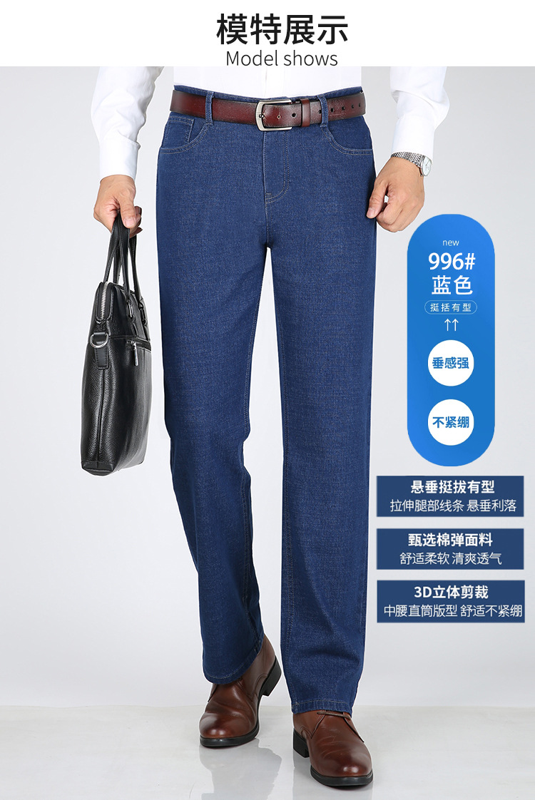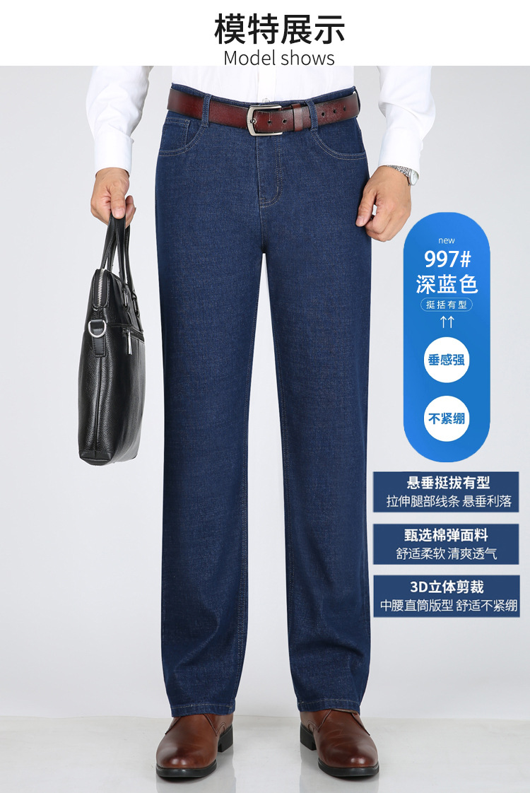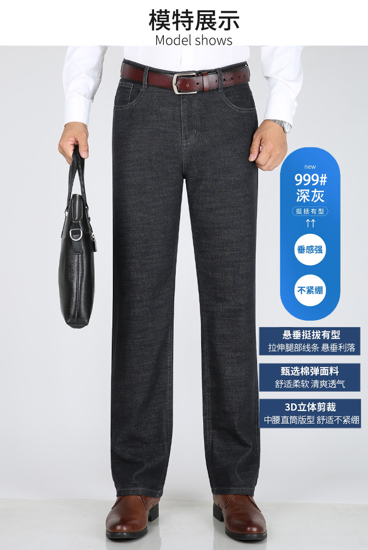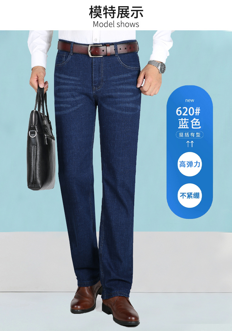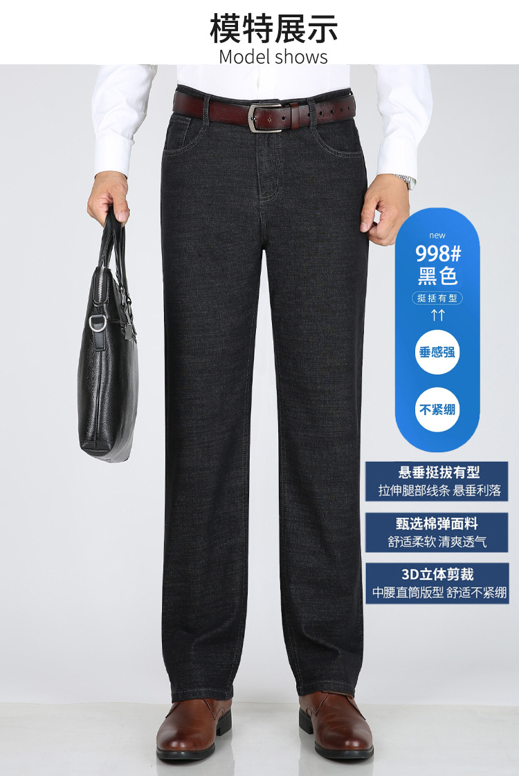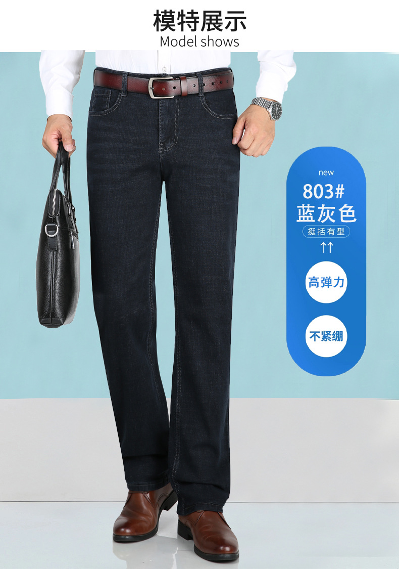 기모 두꺼운 청바지 남자의 느슨한 스트레이트 탄성 플러스 사이즈 따뜻한 양털 하이 웨이스트 겨울 바지 중년 및 노인 남성스토어 가기