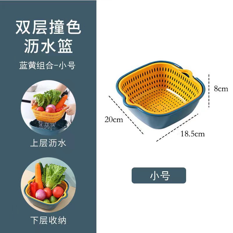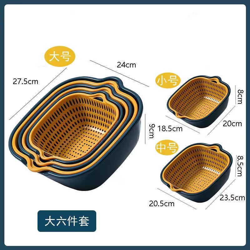 두꺼운 이중층 배수 바구니 6 피스 세트 야채 세면대 가정용 주방 야채 세척 프레임 과일 블루 플라스틱 야채 세척 바구니스토어 가기