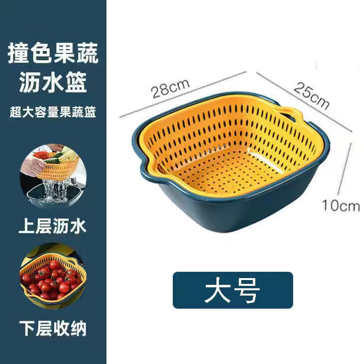 두꺼운 이중층 배수 바구니 6 피스 세트 야채 세면대 가정용 주방 야채 세척 프레임 과일 블루 플라스틱 야채 세척 바구니