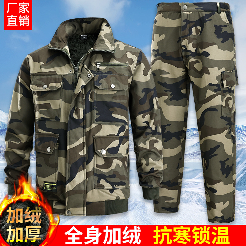 겨울 플러스 벨벳 세트 카키 훈련 따뜻한 작업복 전기 용접 콜드 스토리지 멀티 포켓 작업복 세트 상하 옷