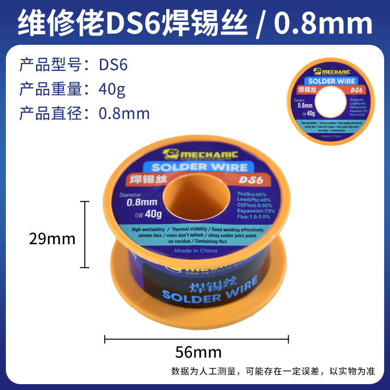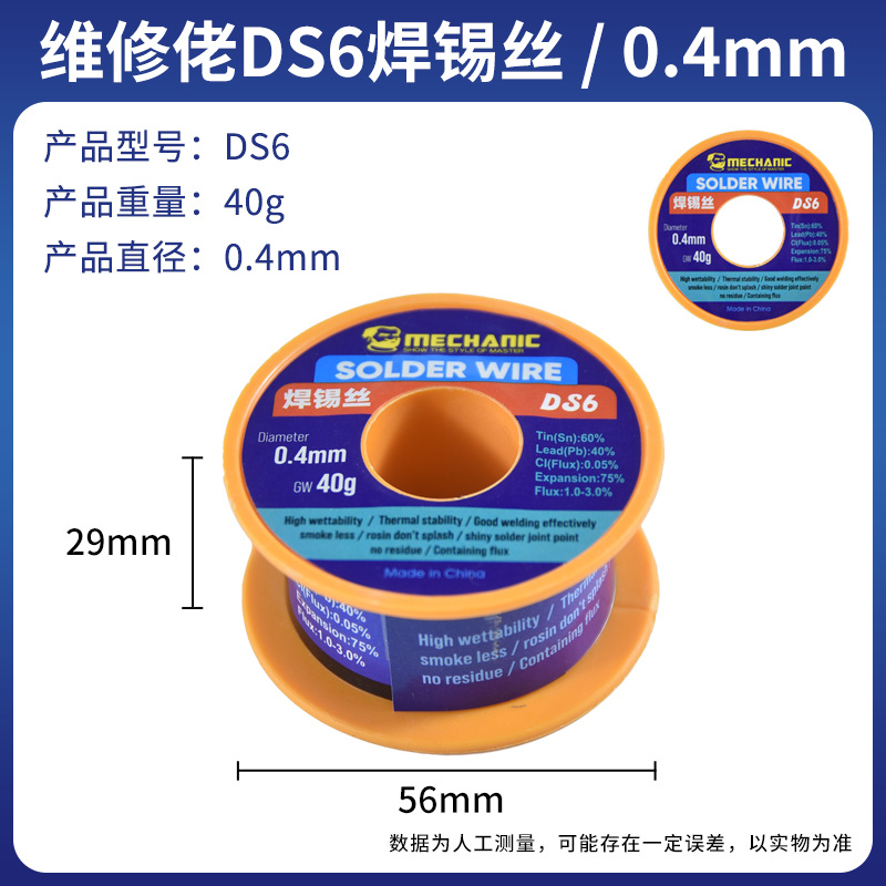 40g 유지 보수 녀석 DS6 로진 코어 고휘도 세척없는 솔더 와이어 (납 주석 와이어 포함) 0.3mm 0.80.5mm