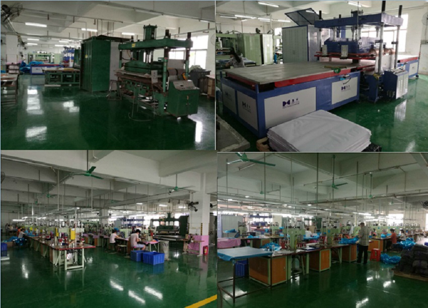 我们自己的产品设计与开发团队,大批技术娴熟的操作工人和先进齐全的生产设备。5KW至150KW的高周波塑料熔接机40余台、针车机20余台、高温机2台。2011年公司通过了ISO9001-2008质量管理体系认证。所有原材料均符合欧盟EN/71、REACH、美国ASTM,FDA标准以及NON –PHTHALATE(6P)/7P/16P,20P,34P等标准。