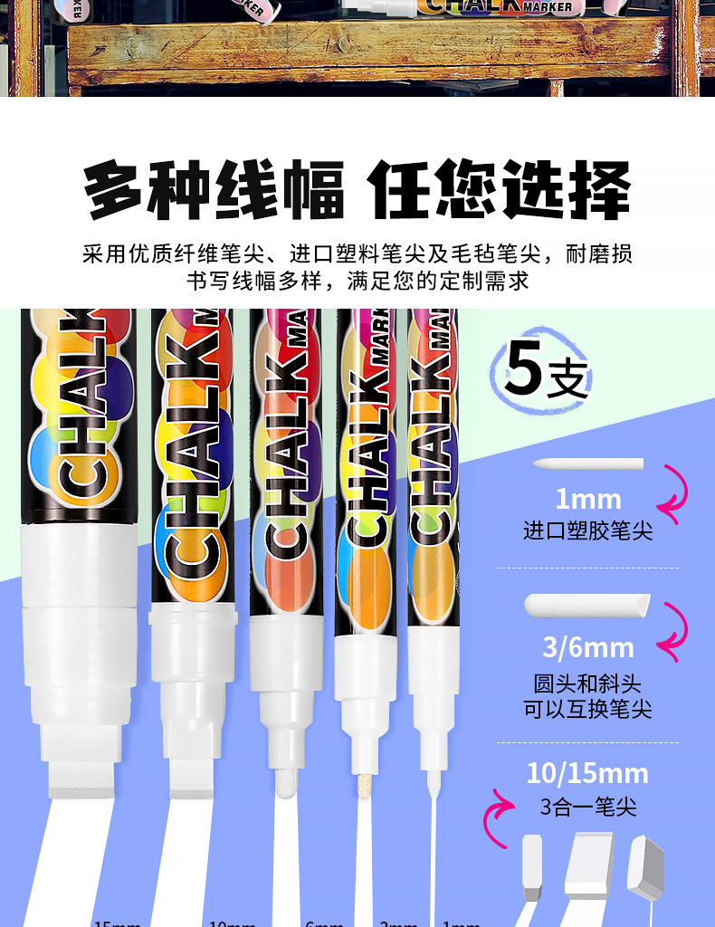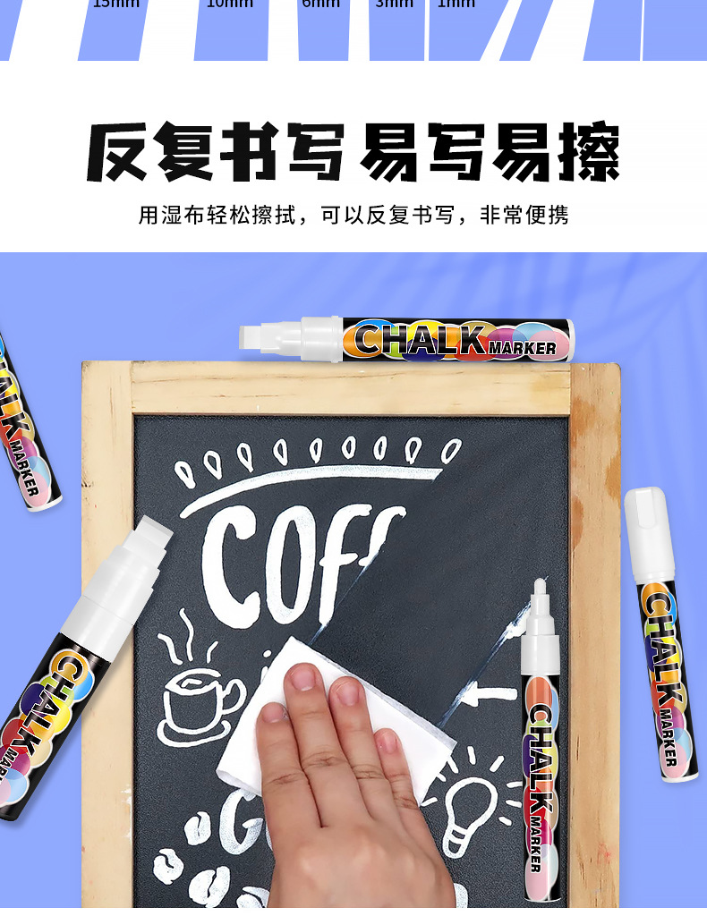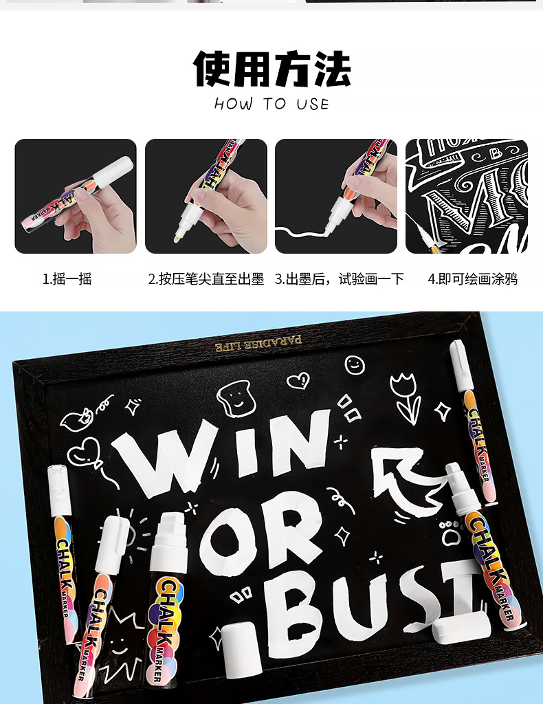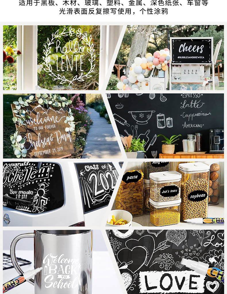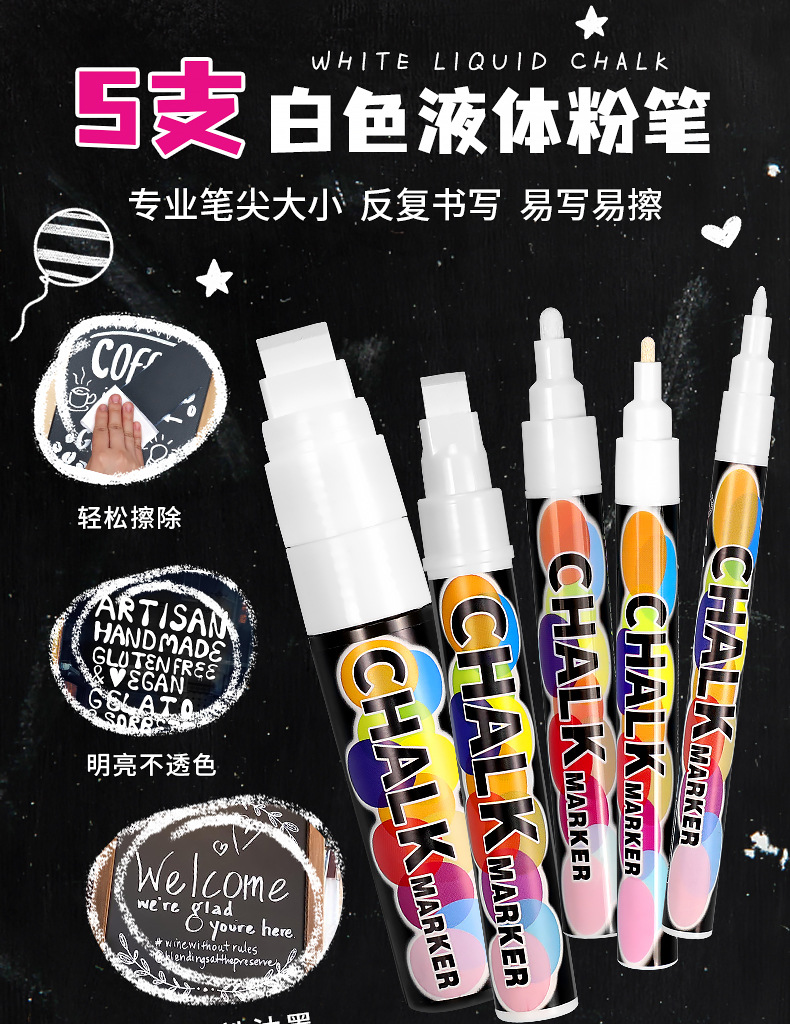 Somachi 흰색 액체 분필 낙서 지울 수있는 광고 형광판 펜 수용성 먼지가없는 더러운 핸드 칠판 펜스토어 가기