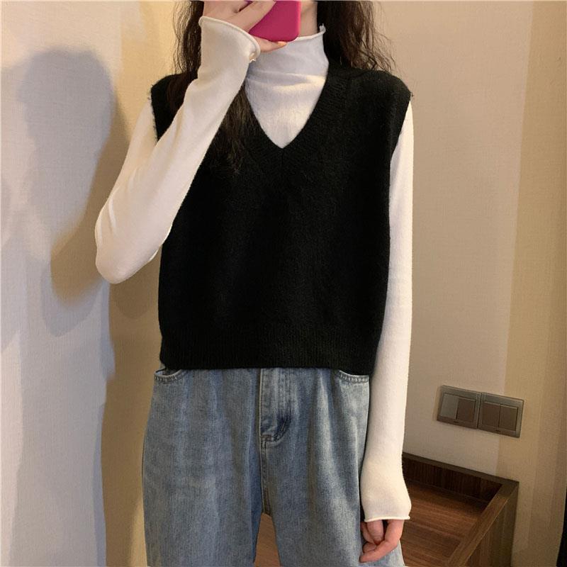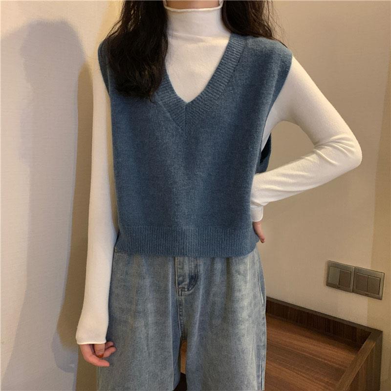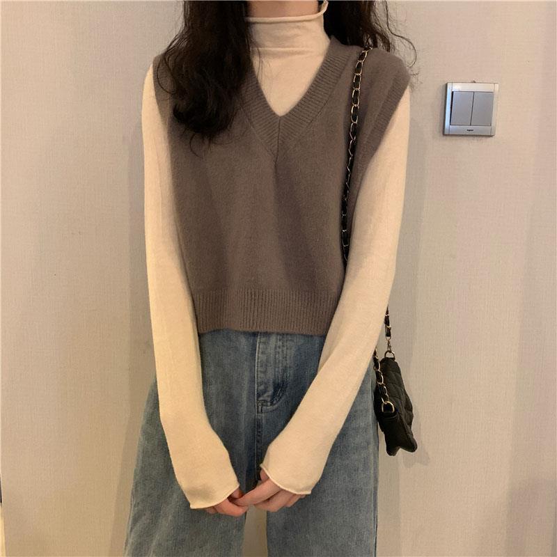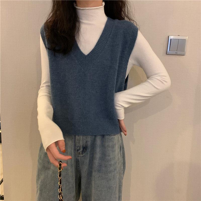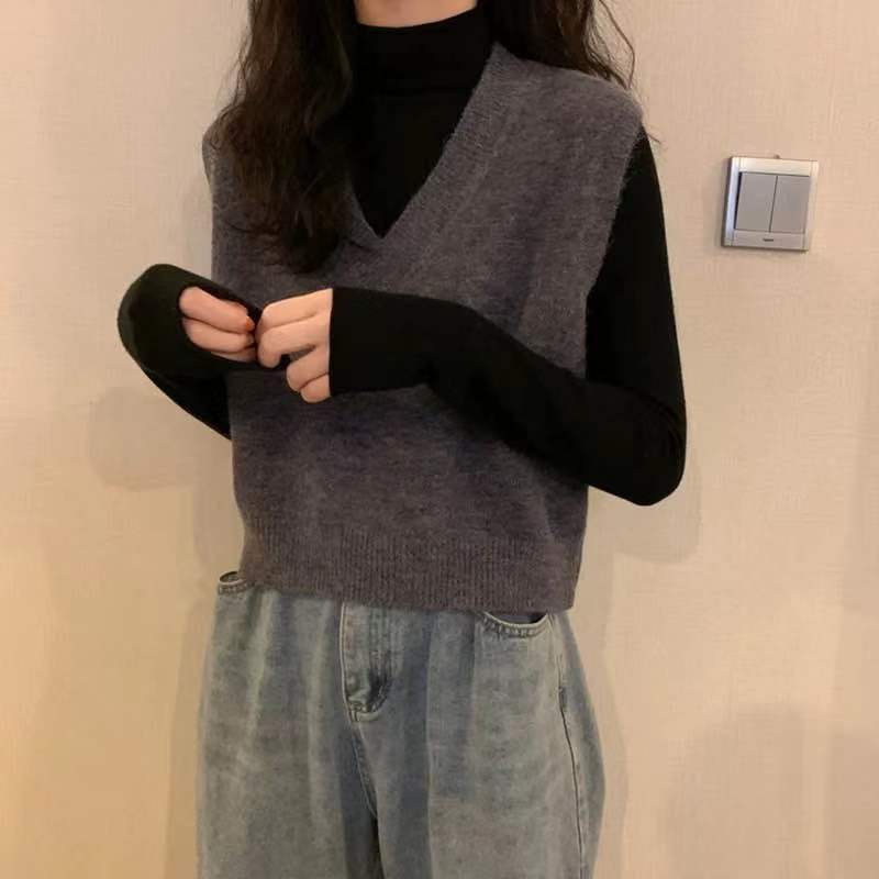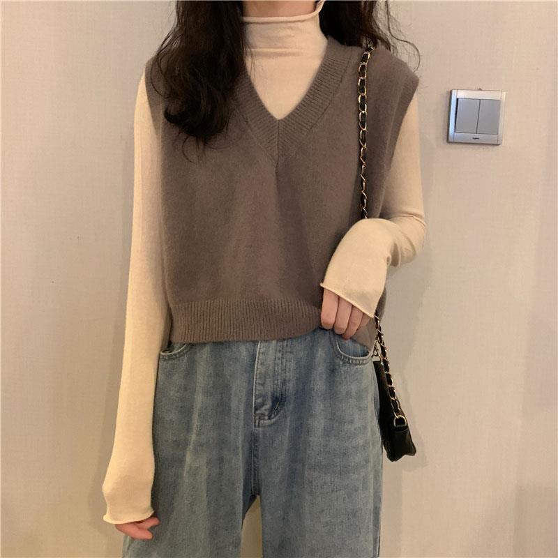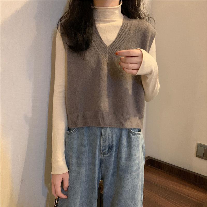 니트 스웨터 조끼 작은 조끼 여자의 가을 V-넥 짧은 한국 스타일 가을과 겨울 다크 브라운 겉옷스토어 가기