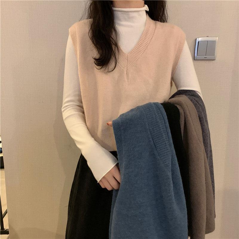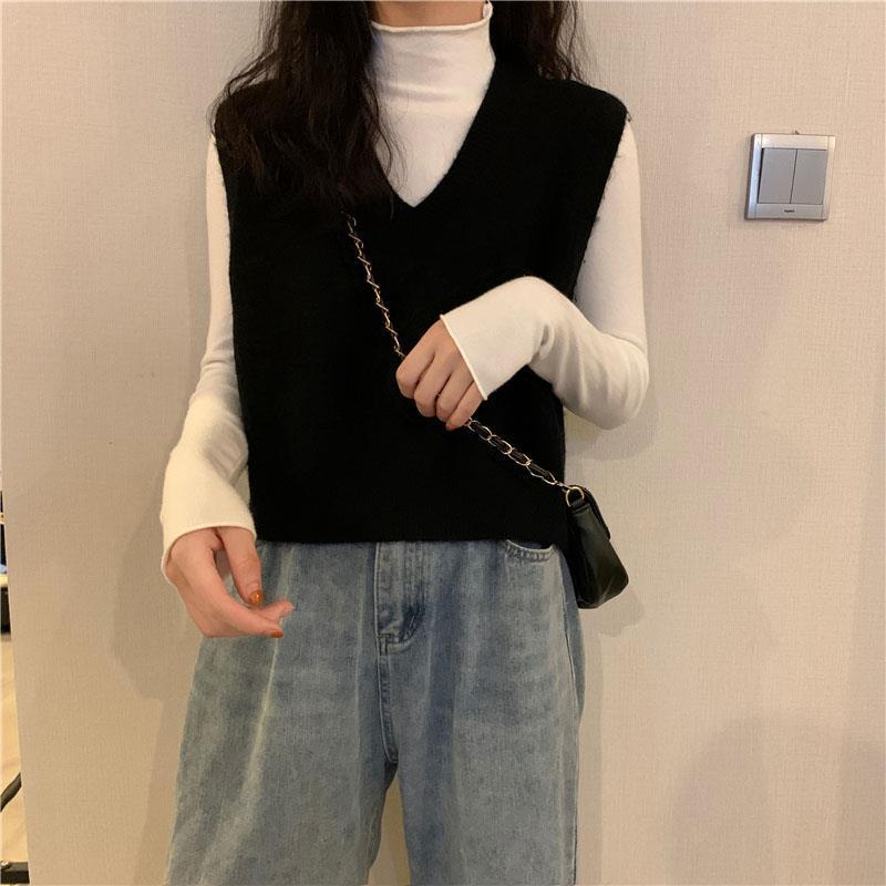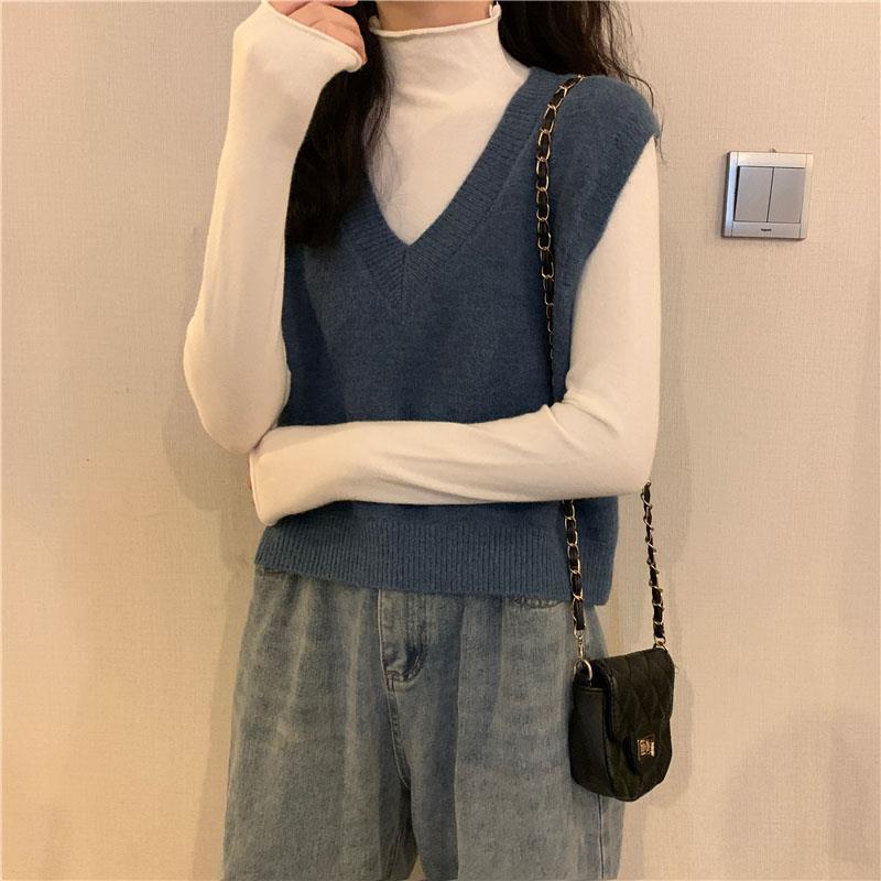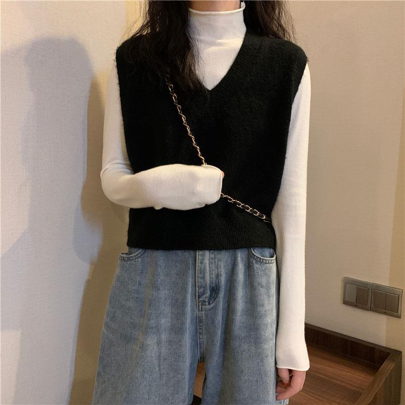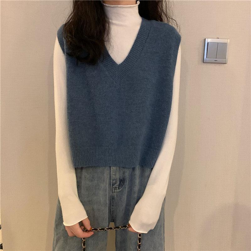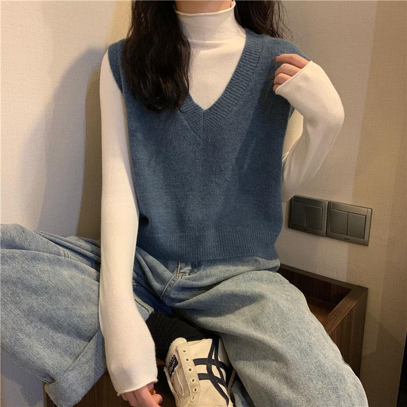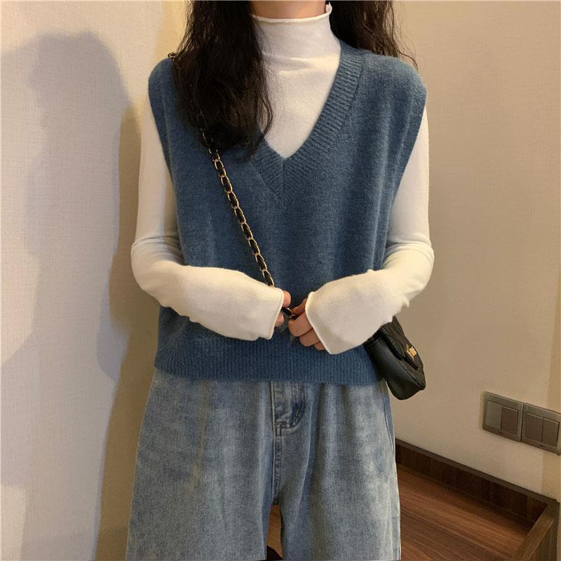 니트 스웨터 조끼 작은 조끼 여자의 가을 V-넥 짧은 한국 스타일 가을과 겨울 다크 브라운 겉옷스토어 가기