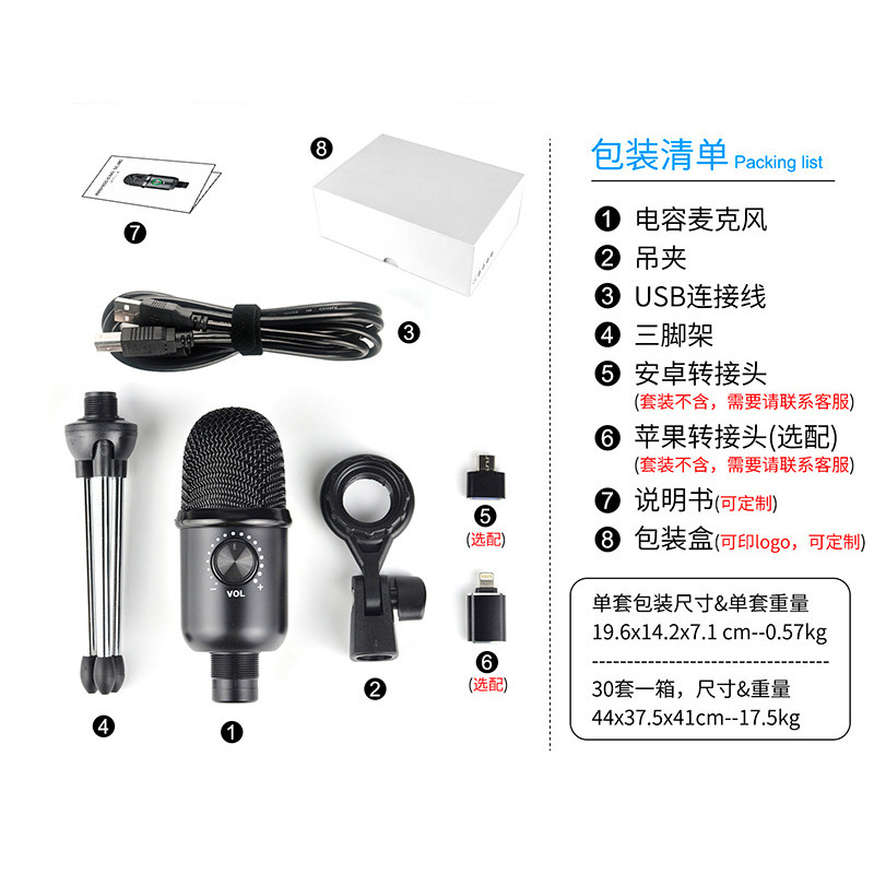 电容麦克风电脑USB录音游戏视频会议直播K歌桌面话筒