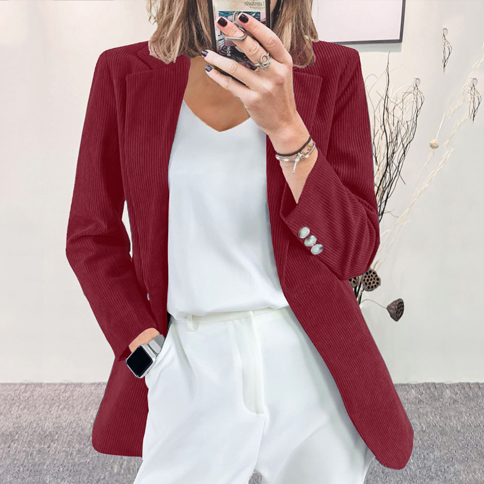 유럽과 미국의 가을 겨울 신상 코듀로이 가디건, 슬림핏, 단색, 캐주얼, 전문적인 작은 정장 재킷스토어 가기