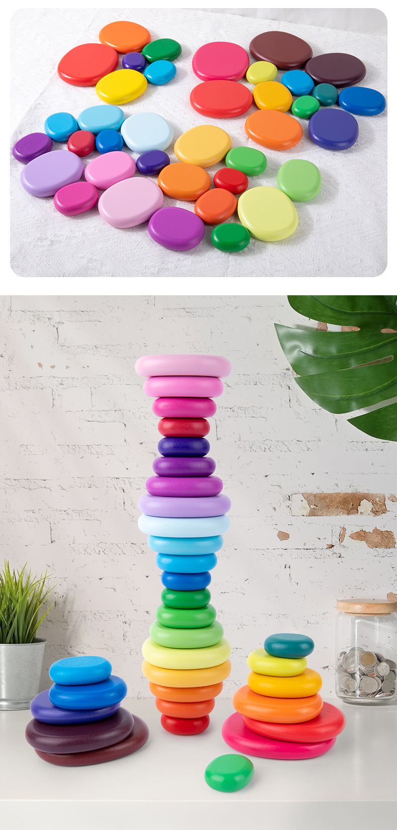 레인보우 힐링 스톤 베이비 컬러인지 상상력 훈련 어린이 교육 스태킹 높은 조립 장난감