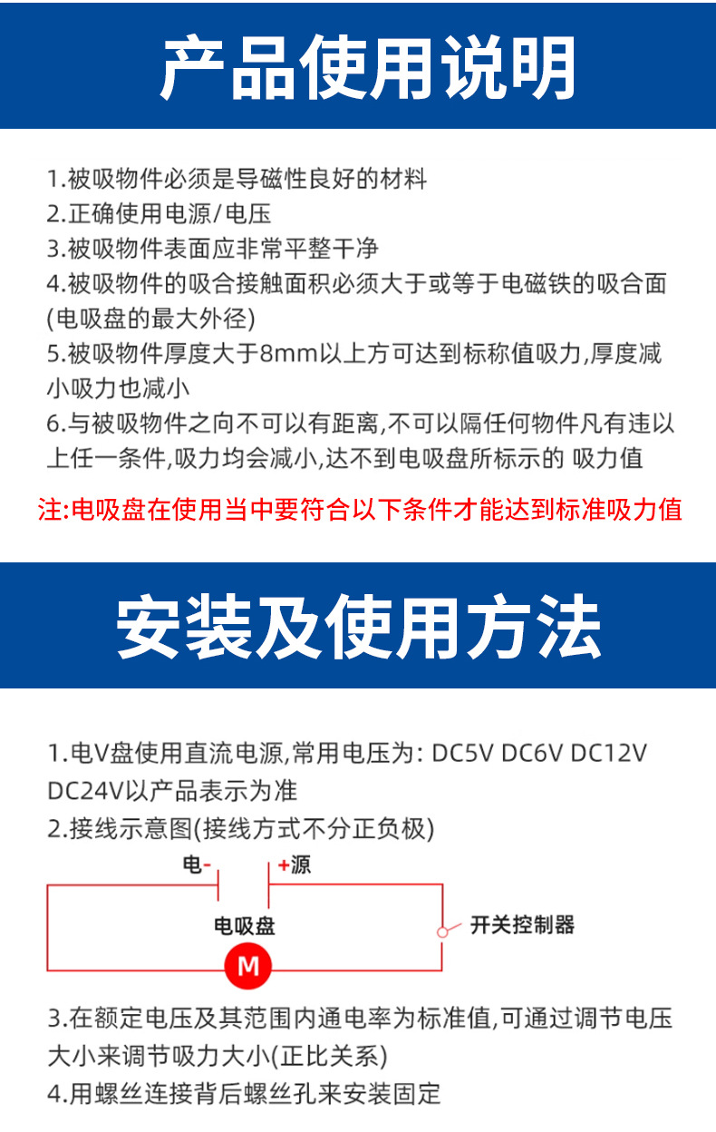 전자석 흡입 판 직사각형 12v 강한 자력 척 구리 코일 산업용 24V 소형 전자석스토어 가기