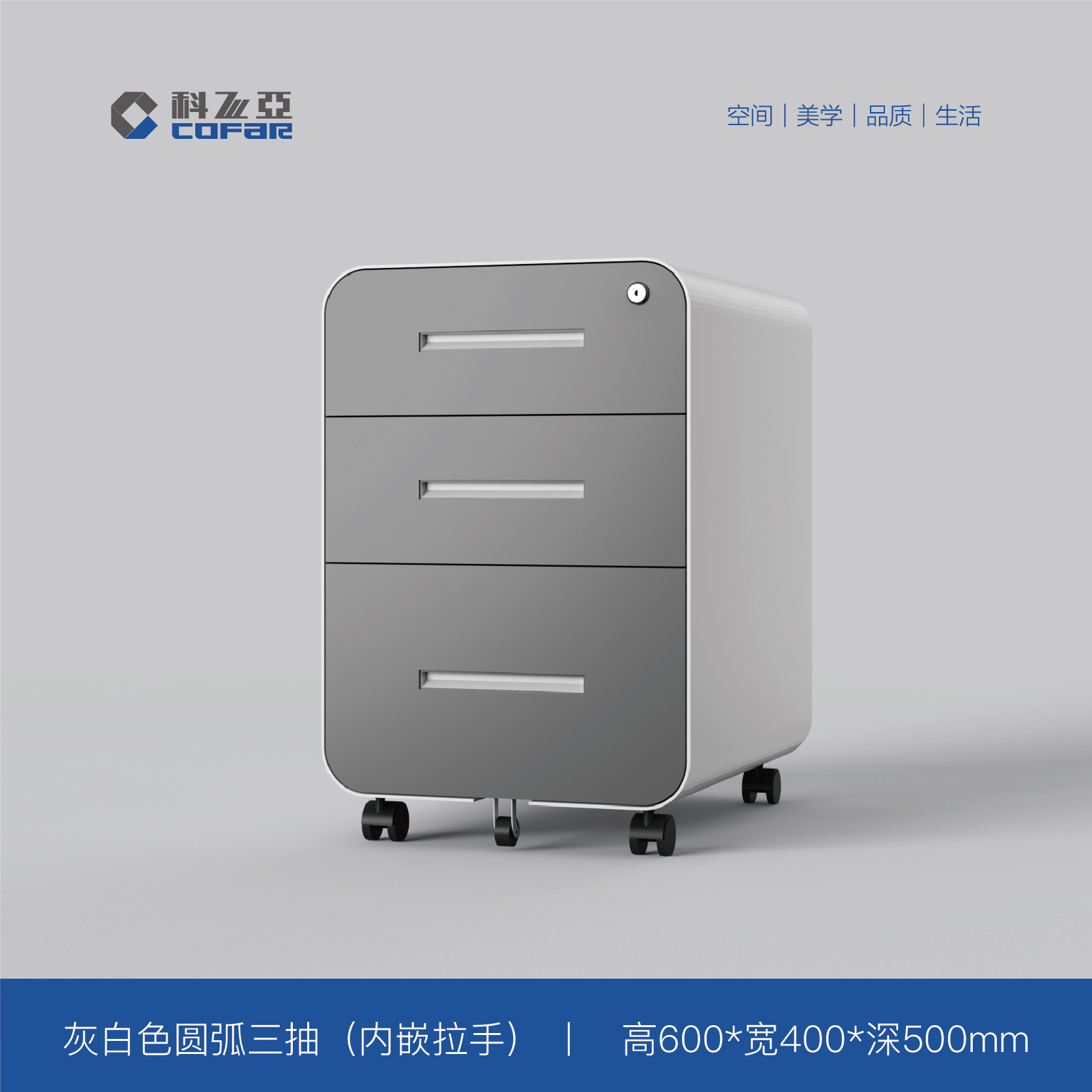 • 아치형 3단 서랍, 회색빛 흰색 배색 (내장형 손잡이)