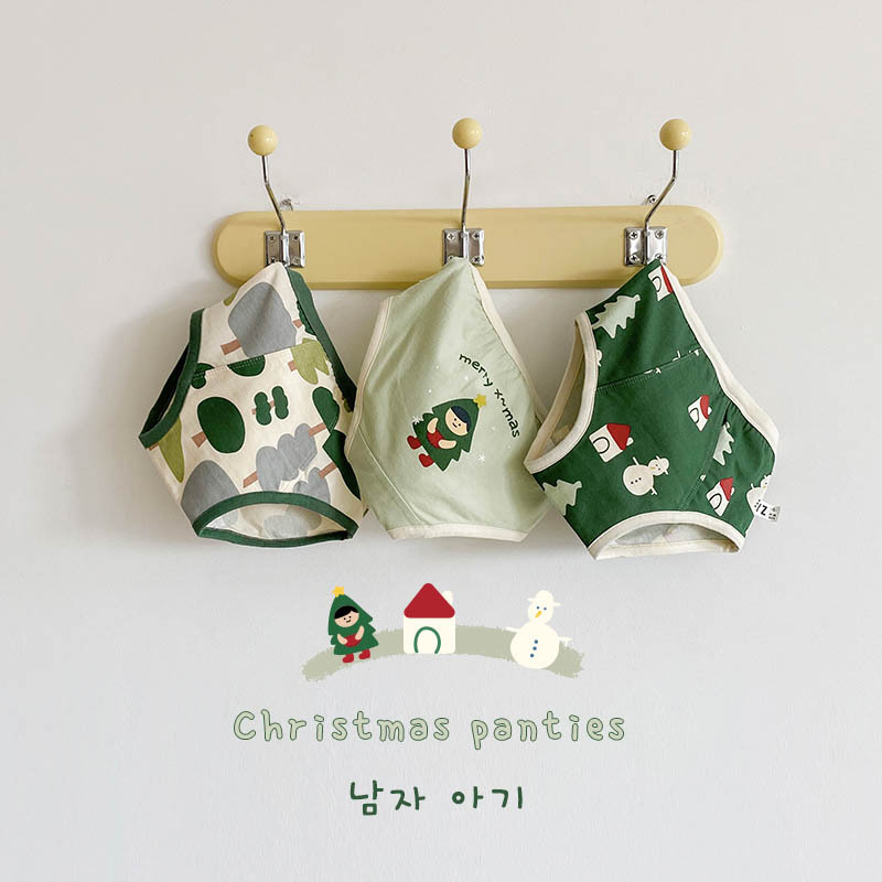 N068 아동 속옷 도매 봄과 가을 레드 크리스마스 삼각형 반바지 아동면 여아 속옷스토어 가기