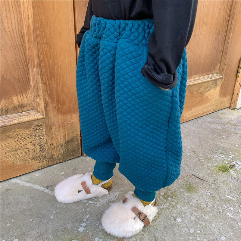 Mao Kaixin 겨울 새로운 2023 어린이 기모 와이드 다리 바지 아기 소녀 두꺼운 느슨한 따뜻한 캐주얼 블루머스토어 가기