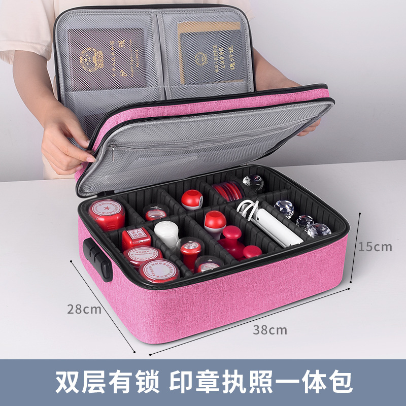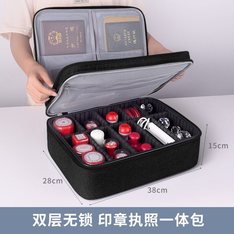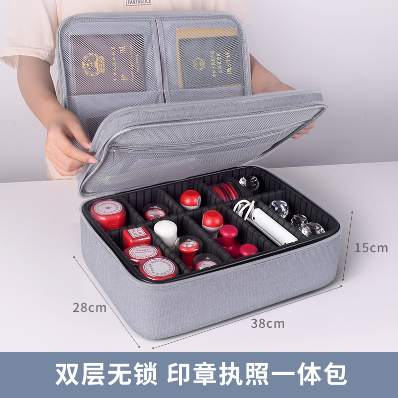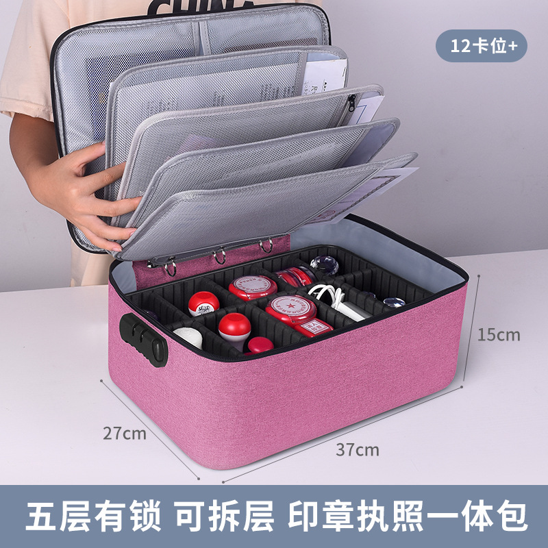 인감 보관 가방 비즈니스 라이센스 보관 가방 휴대용 다층 원본 복사 세트 문서 상자 라이센스 가방 방수 잠금