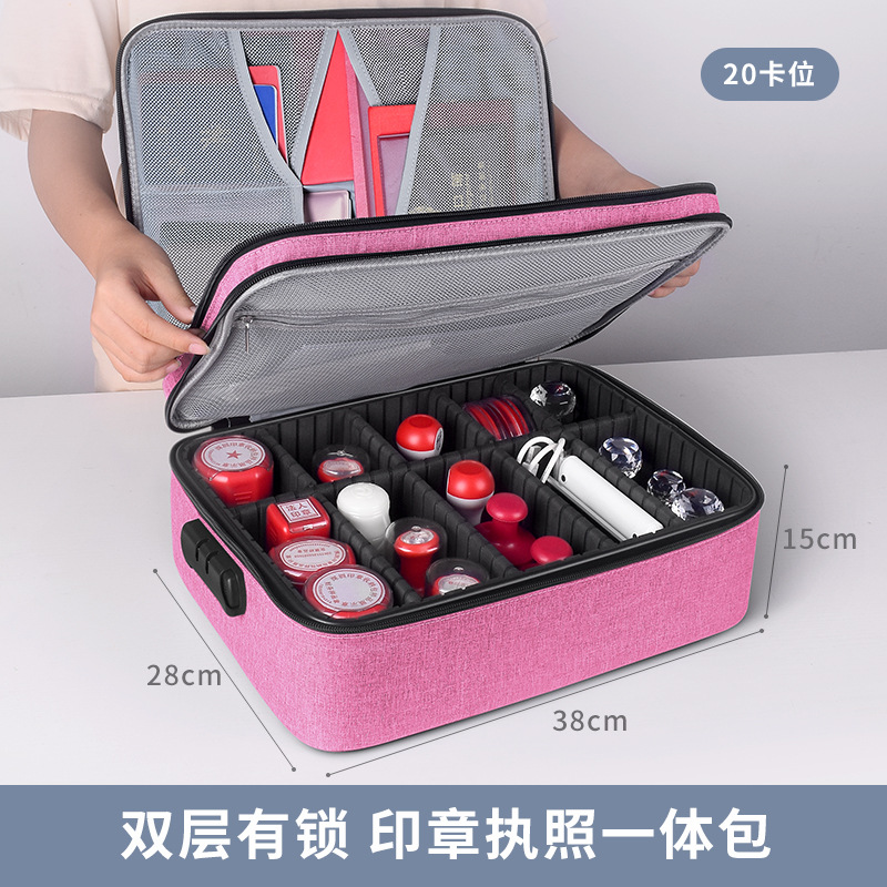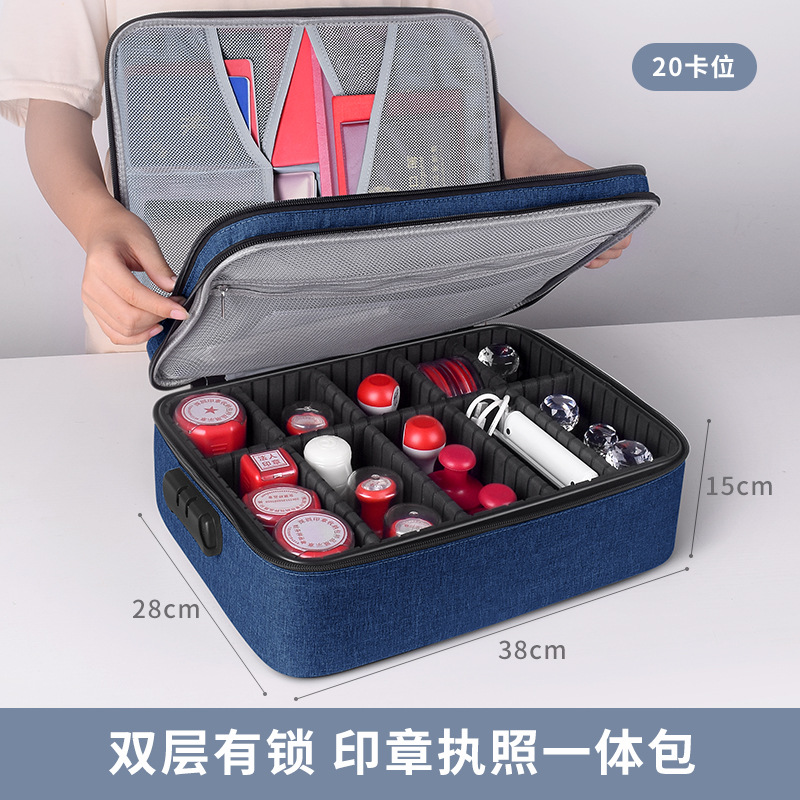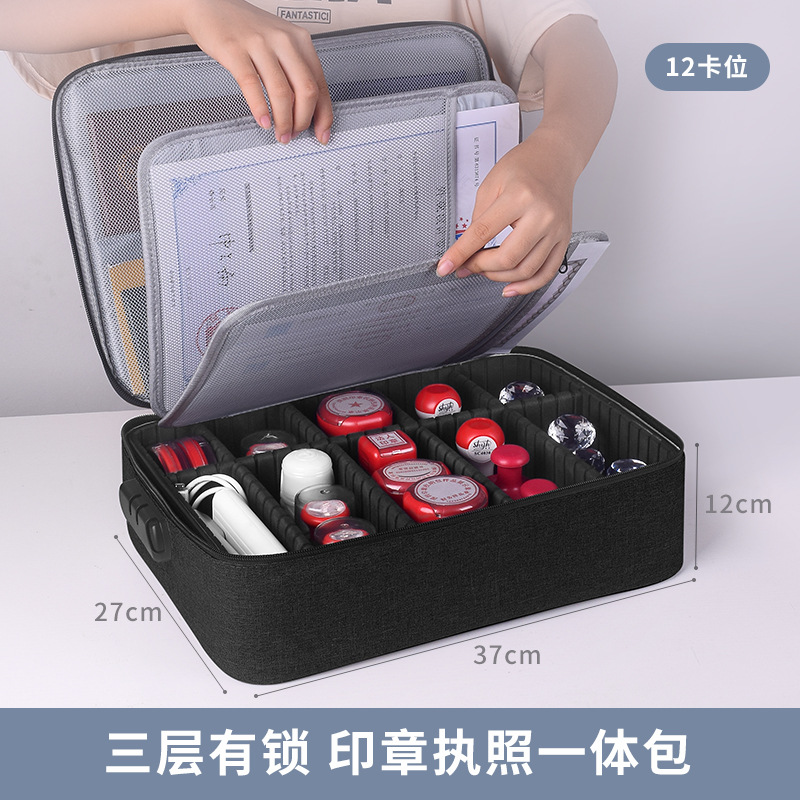 인감 보관 가방 비즈니스 라이센스 보관 가방 휴대용 다층 원본 복사 세트 문서 상자 라이센스 가방 방수 잠금스토어 가기