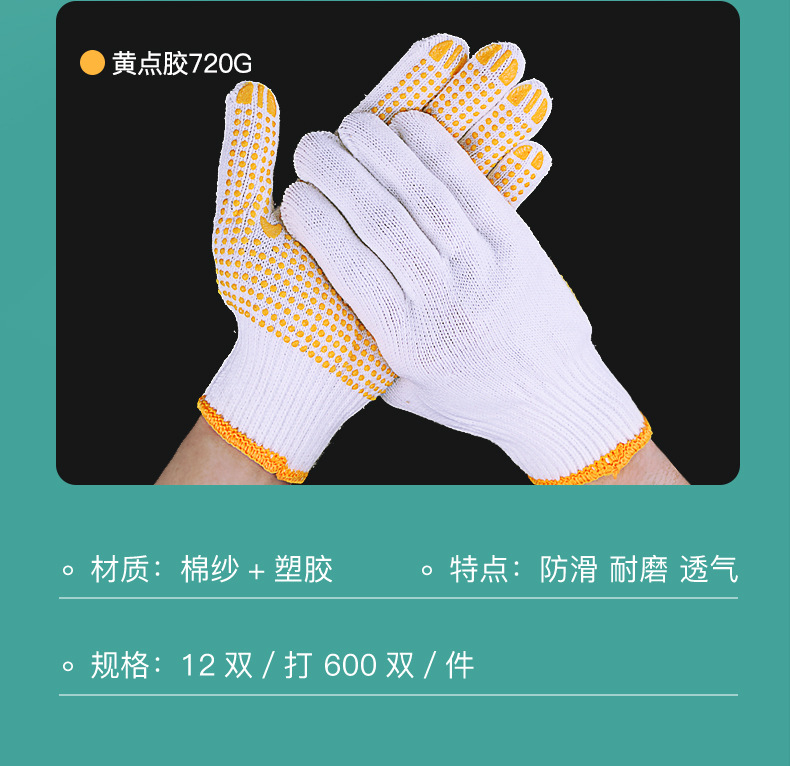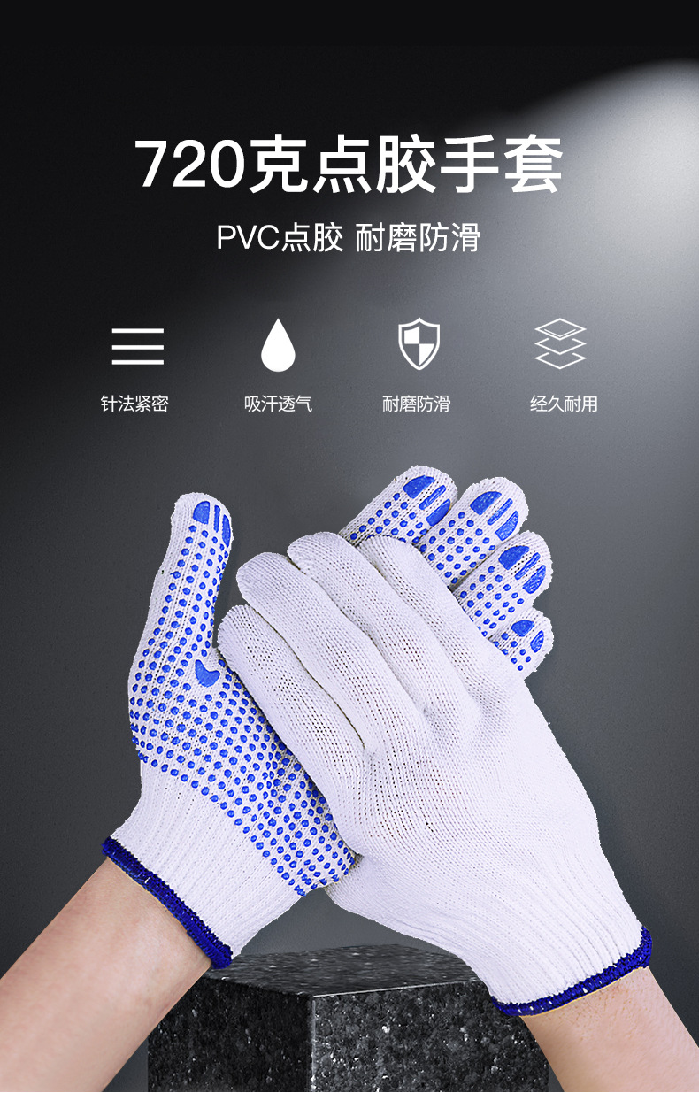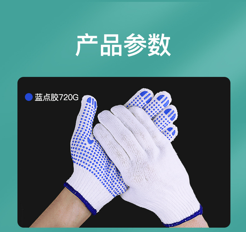 공장 직접 표백 면사 블루 포인트 플라스틱 장갑 720g 분배 비즈 미끄럼 방지 노동 보호 장갑 도매스토어 가기