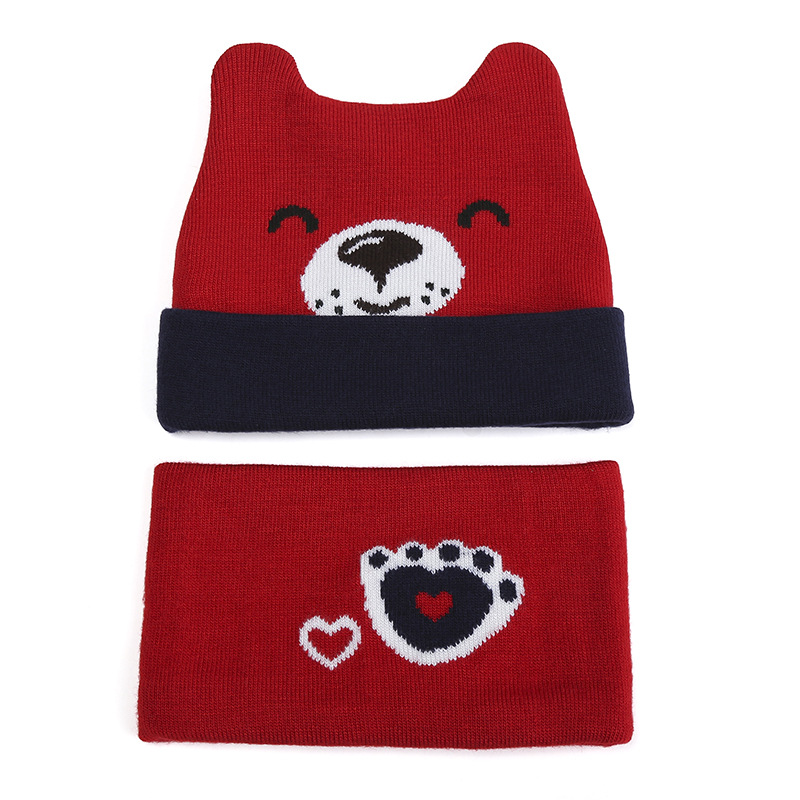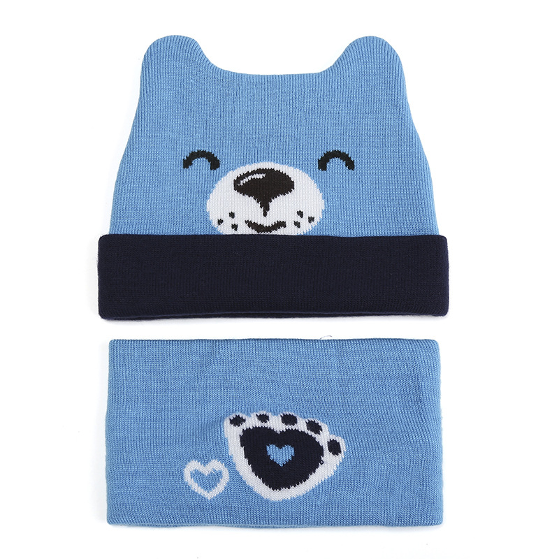 유아 모자 가을과 겨울 0-2 세 소년과 소녀 아기 풀오버 모자 강아지 어린이 니트 모자 스카프 세트 모자