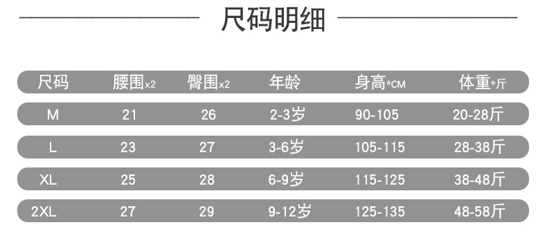• XXL 코드 9-10 세 신장 130-150, 체중 65kg